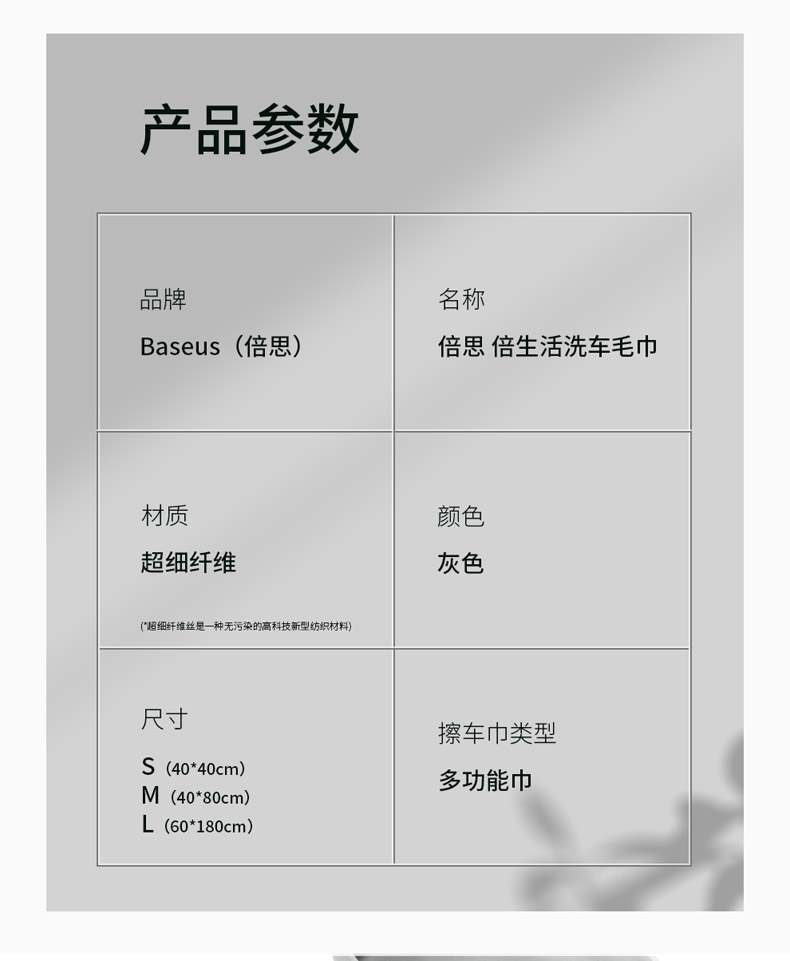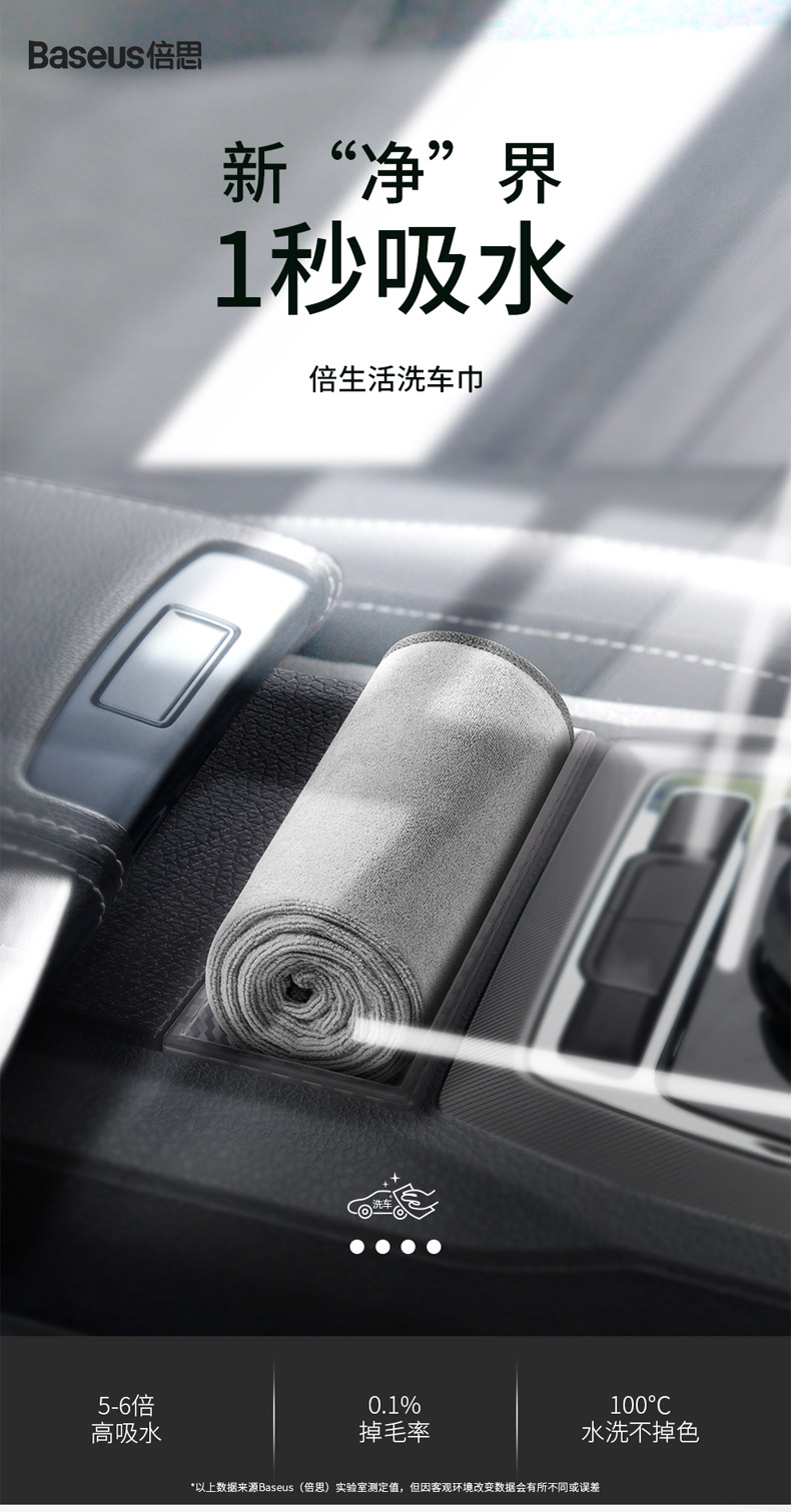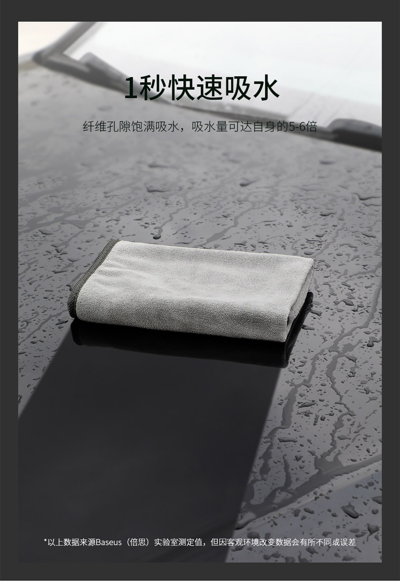 【十一专享】倍思 倍生活洗车毛巾(40*40cm 两条装)灰色