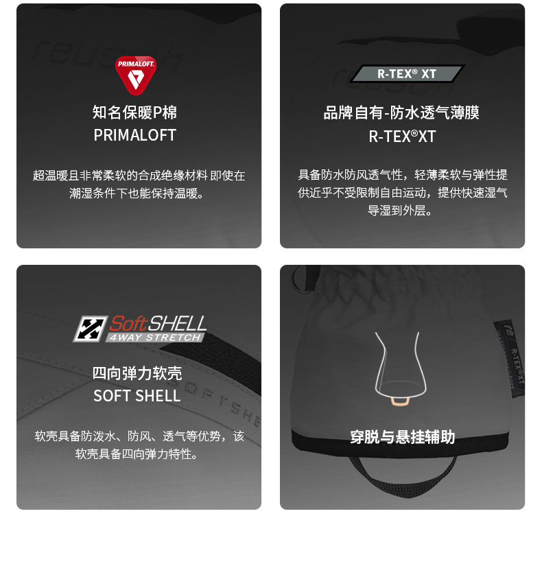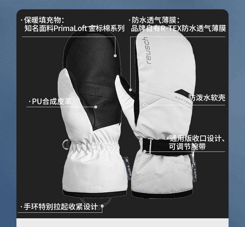 Reusch 炫驰 女士款并指滑雪手套防风防水 6331513