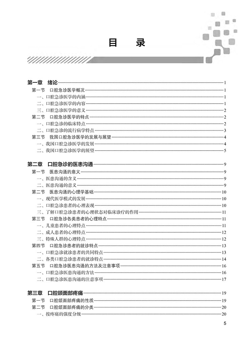 口腔急诊医学除了包含各类口腔疾病急性发作的诊断、治疗,还包含与口腔医学专业密切相关的急诊医学的基础理论知识和临床实践技能。主要内容包括绪论、口腔急诊的医患沟通技巧、口腔急诊疼痛的性质与患者健康评估、口腔牙体牙髓急症、口腔颌面部急症、牙周粘膜急症、儿童口腔急症、牙外伤急诊治疗、急性口腔功能障碍、口腔局部麻醉及其并发症的救治、口腔临床常见椅旁急症的处理等。其中,口腔临床常见椅旁急症、牙齿外伤治疗、局麻风险评估及并发症处理是以往相关书籍欠缺的内容也是本书的特色内容。