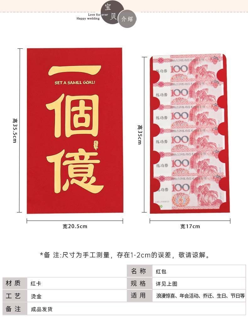 【品名】因贝比 创意红包过年必备 2个装 【规格】2个 【产地】国内 【发货包装】独立包装 【发货地】浙江 【发货快递】中通、圆通、申通、百世、韵达随机发 【不发货区域】新疆、西藏、港澳台 【发货时效】48-72小时,周末节假日顺延 |
