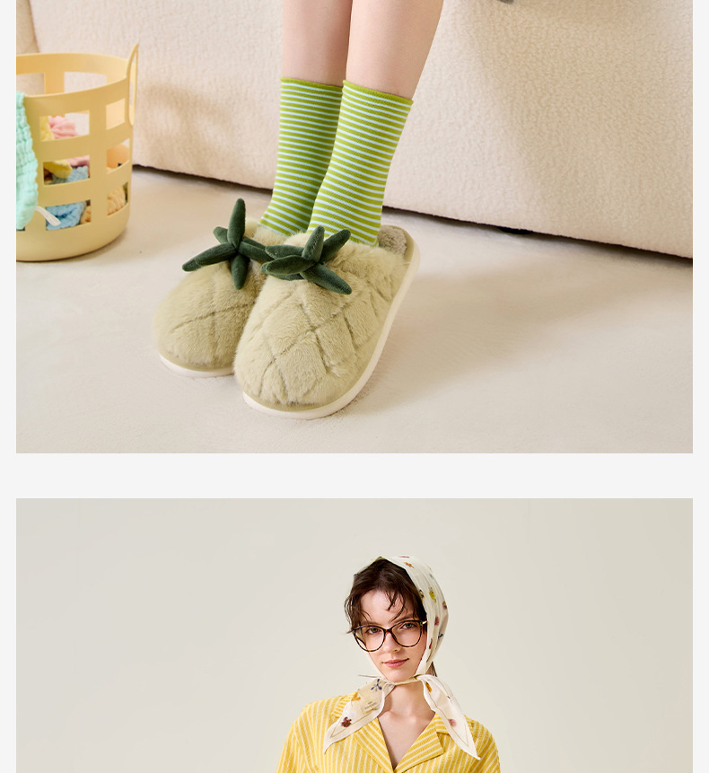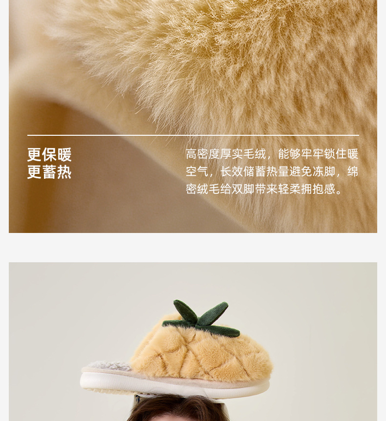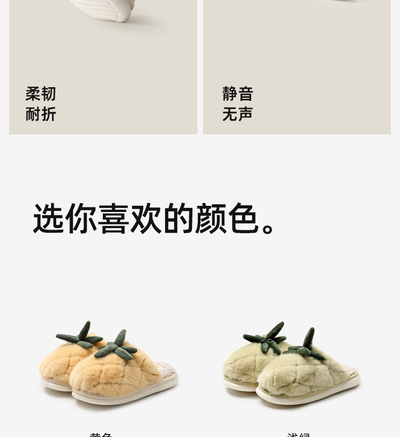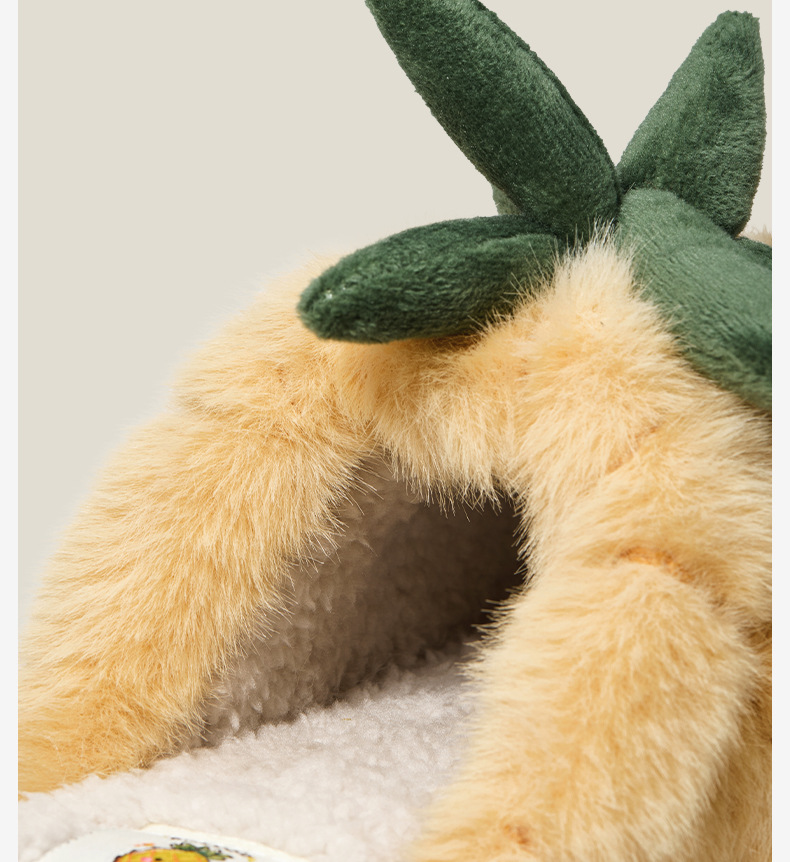 萌趣菠萝!2025秋冬加绒棉拖鞋女式卡通可爱室内家用保暖毛绒拖鞋加绒加厚棉拖