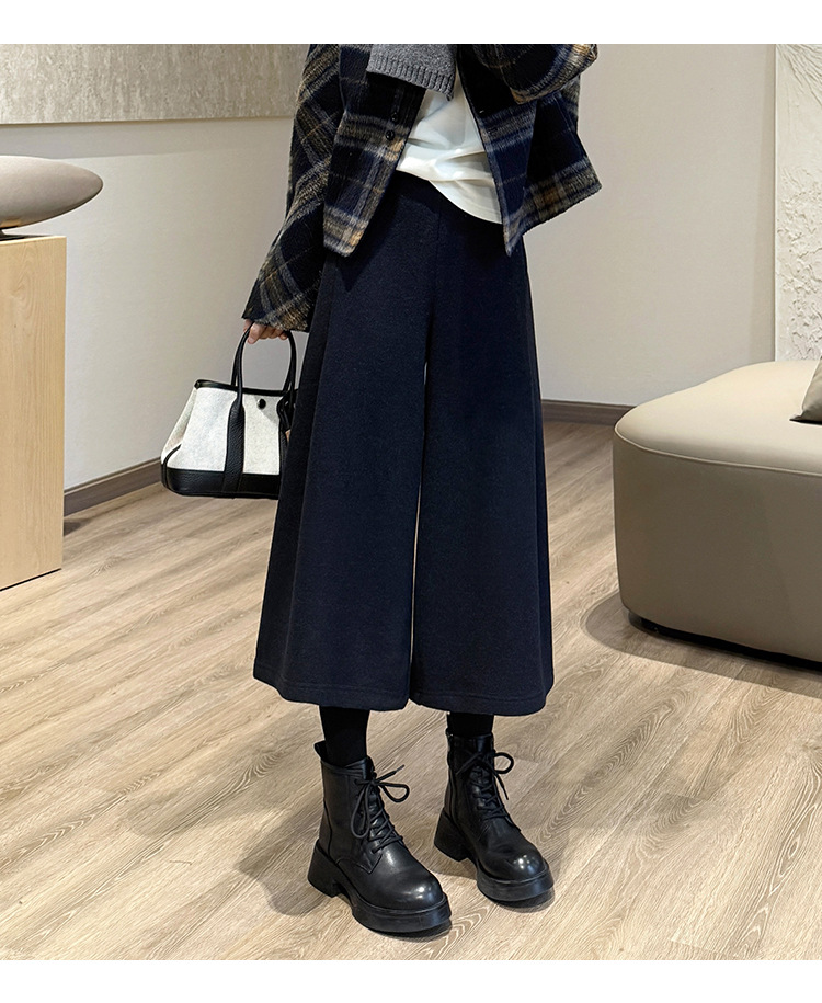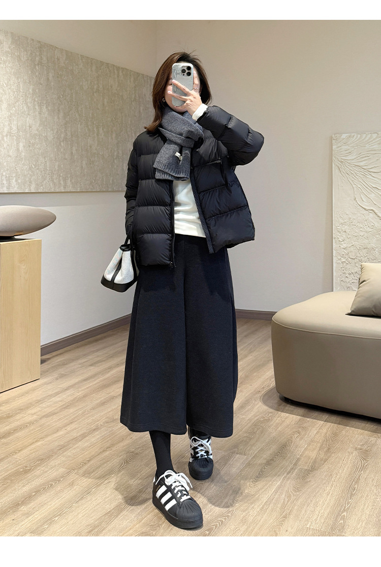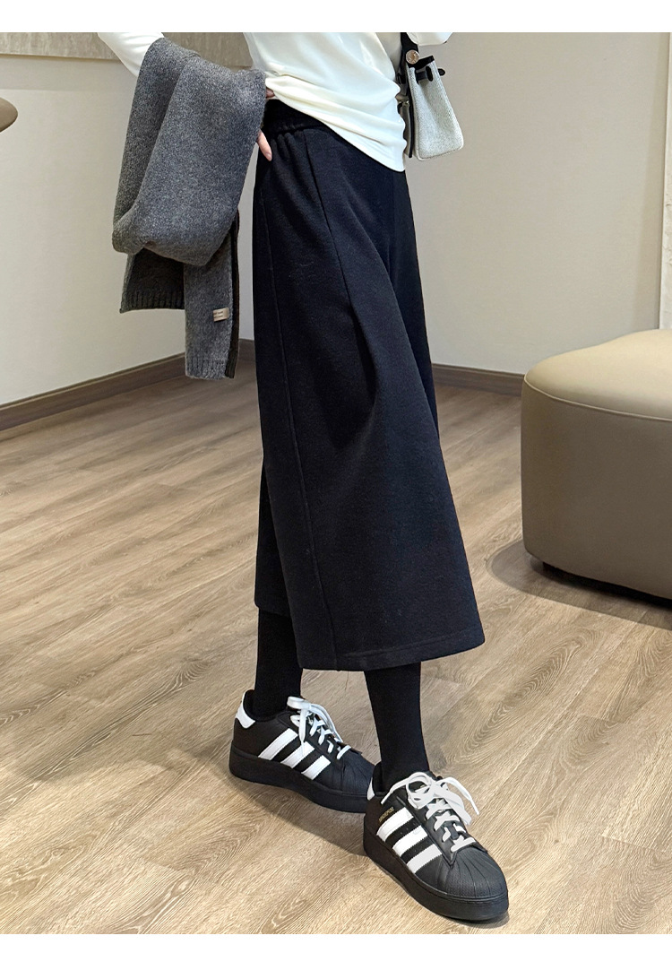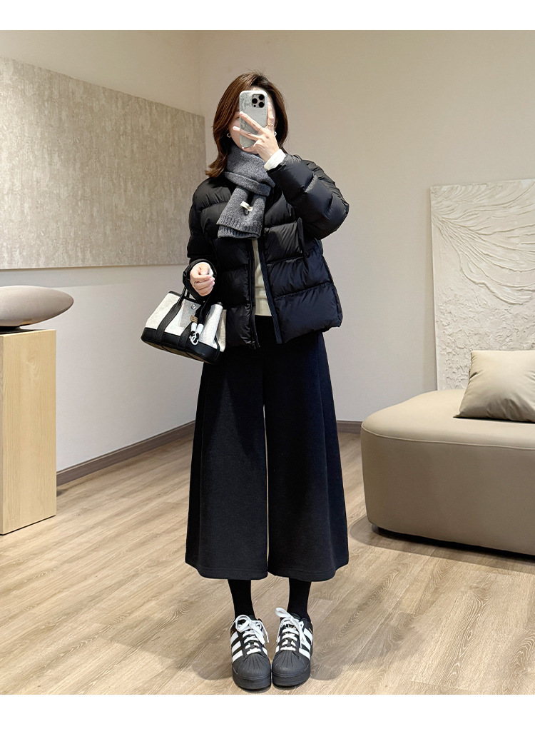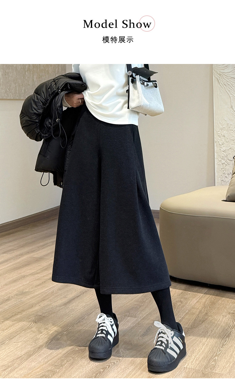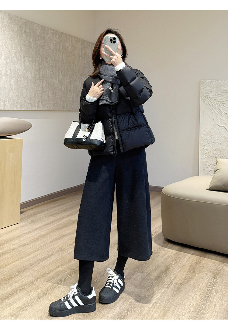 裤长刚好到小腿肚细的位置露出一截脚踝或小腿线条
