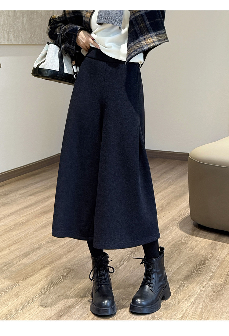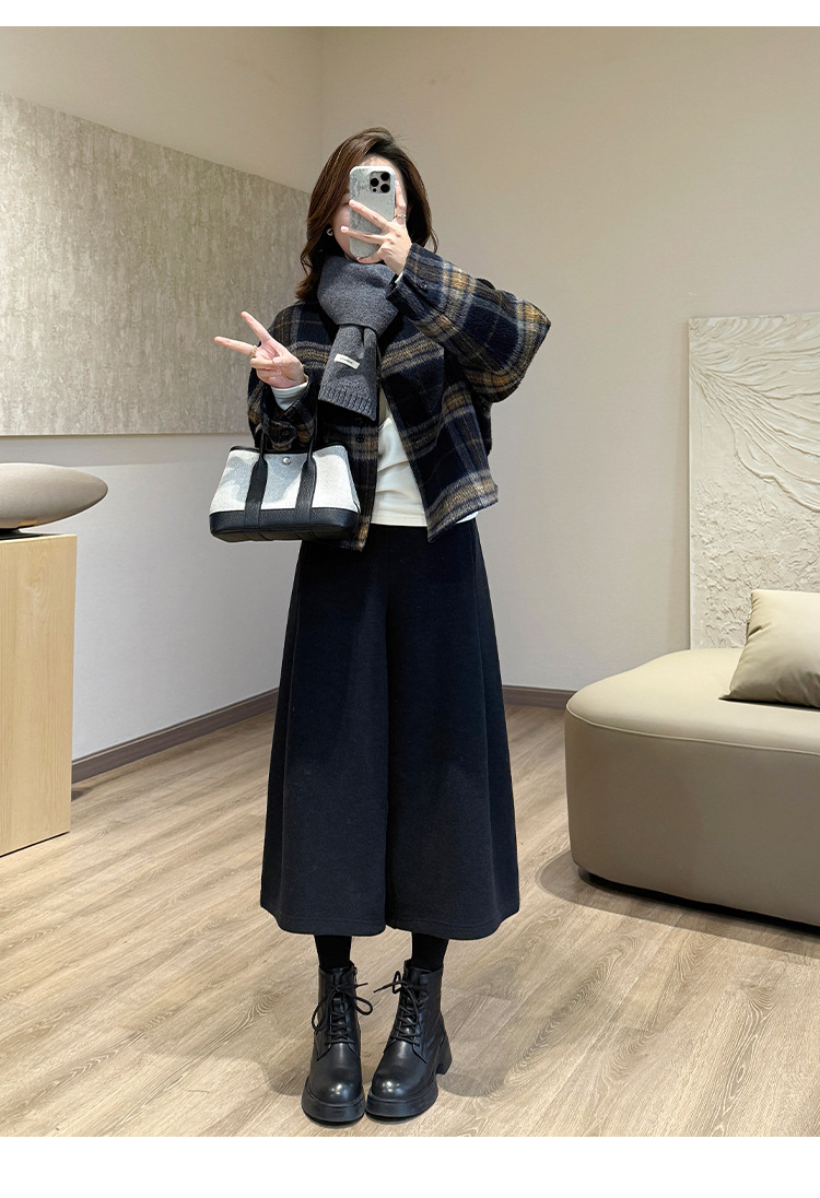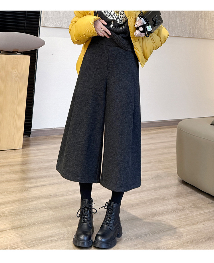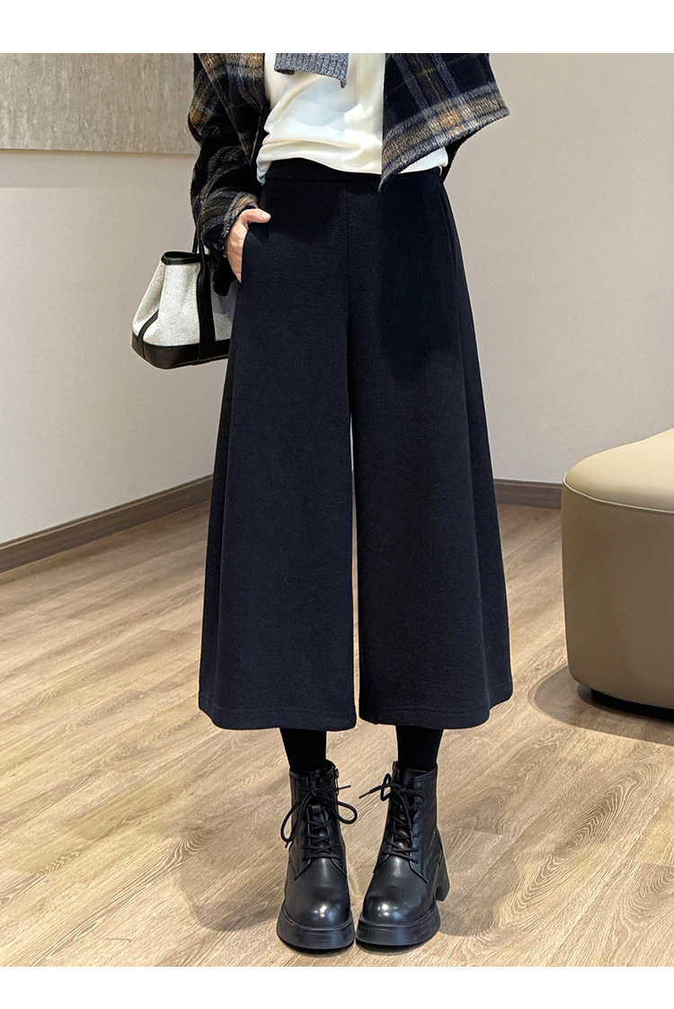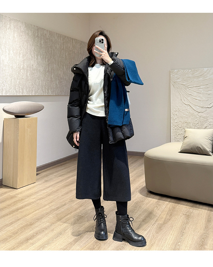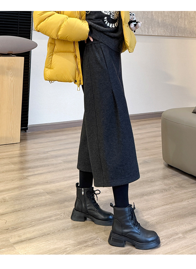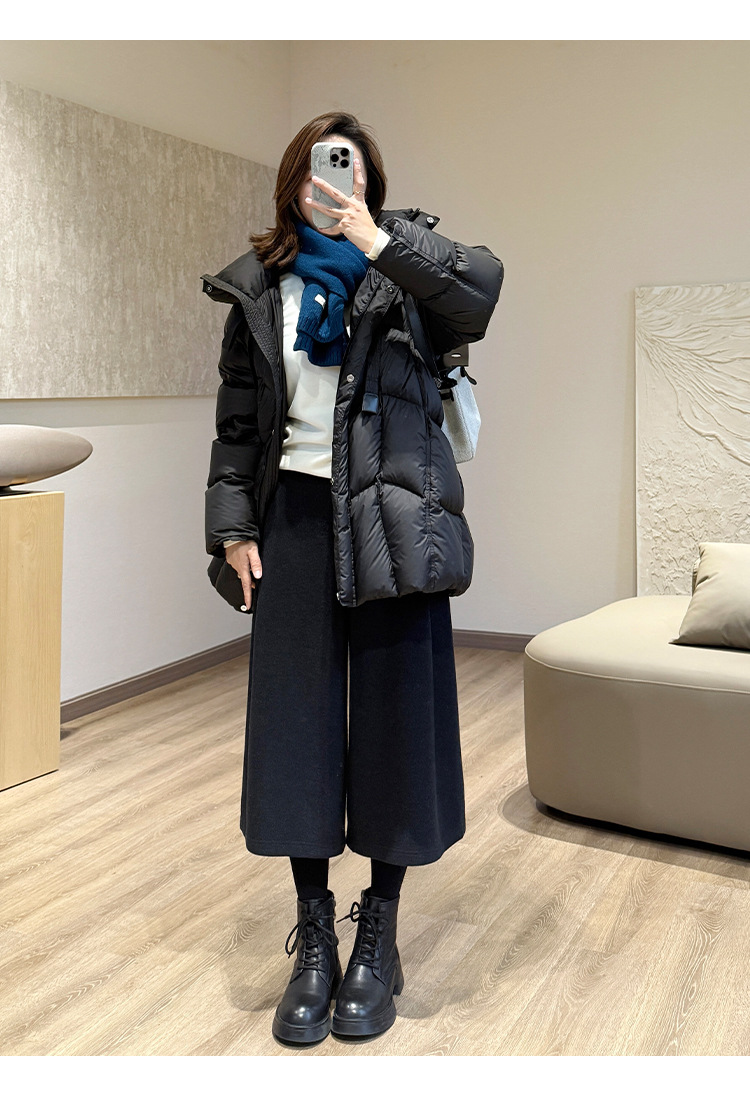 裤长刚好到小腿肚细的位置露出一截脚踝或小腿线条