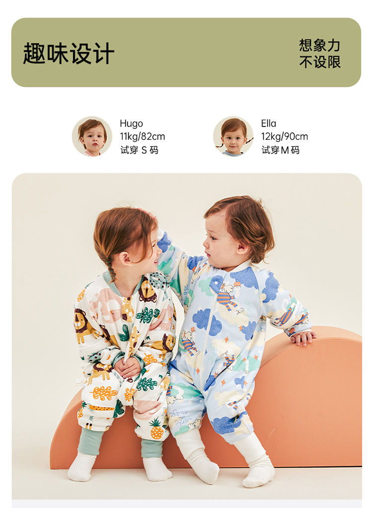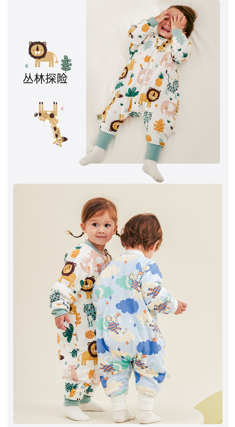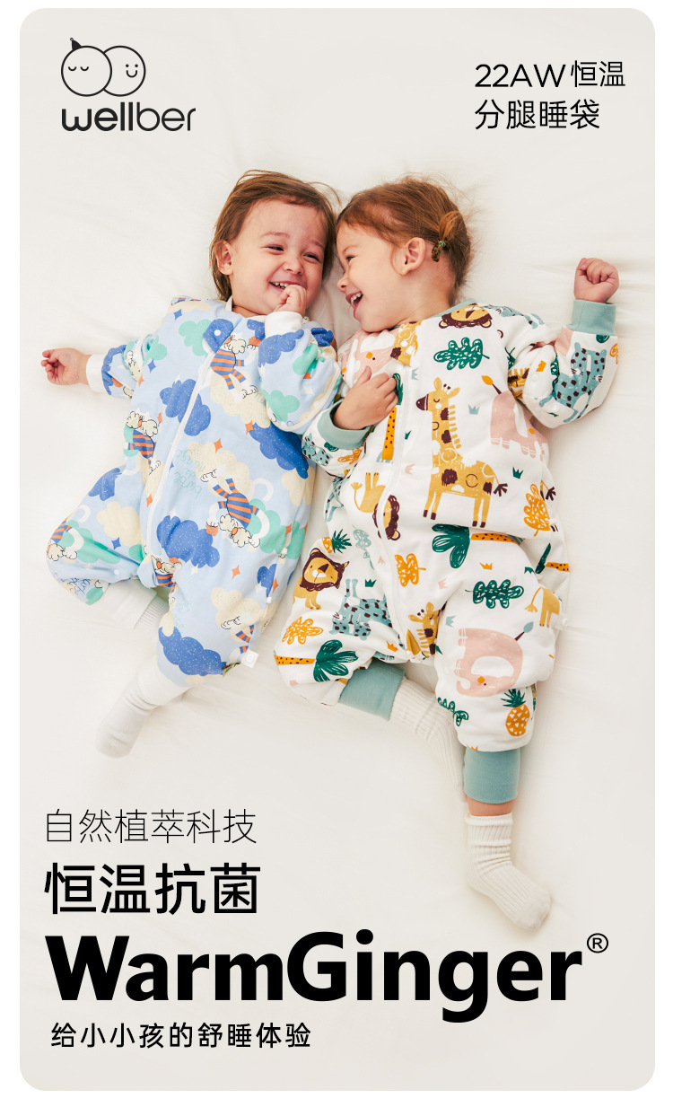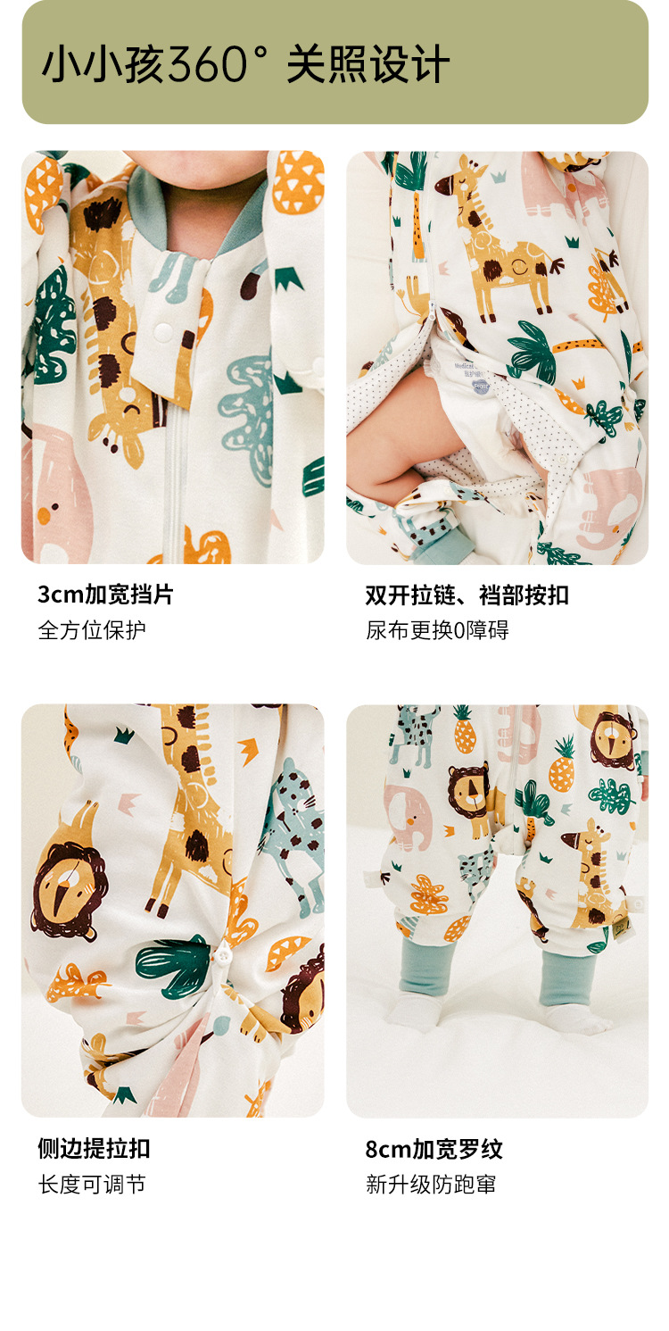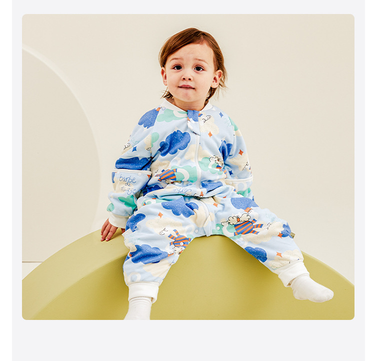 威尔贝鲁婴儿睡袋可脱半袖恒温秋冬款宝宝分腿儿童大童厚防踢被子