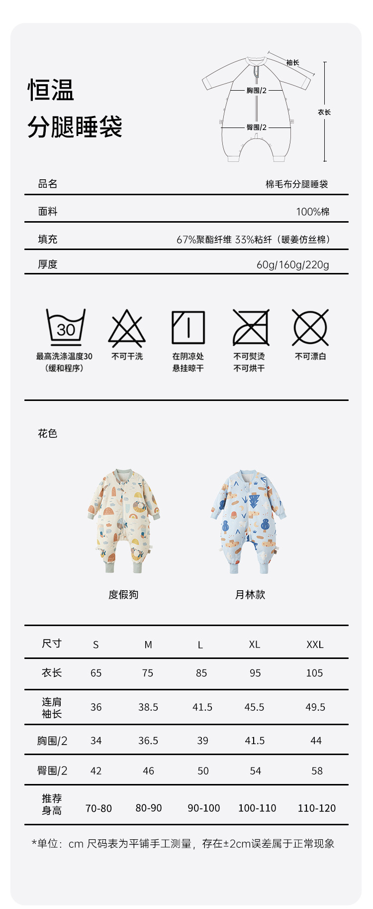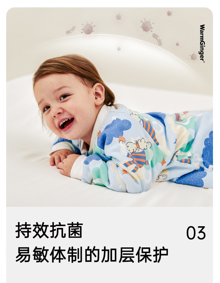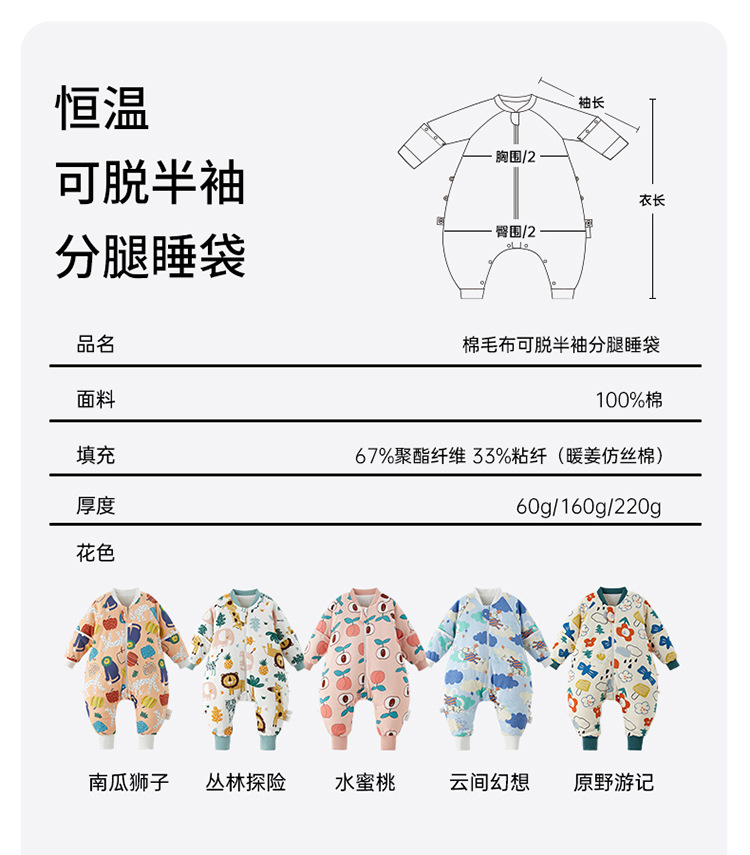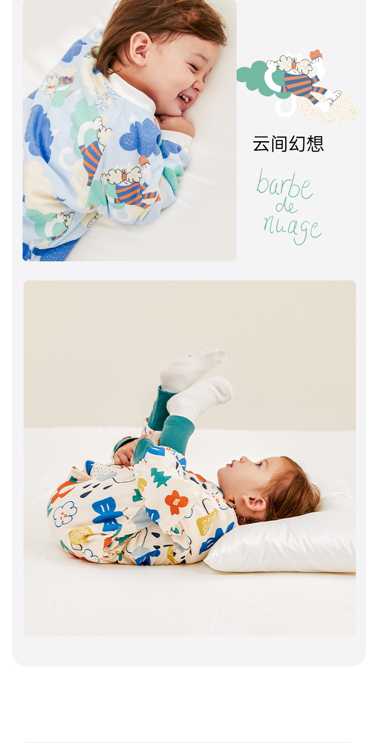 威尔贝鲁婴儿睡袋可脱半袖恒温秋冬款宝宝分腿儿童大童厚防踢被子