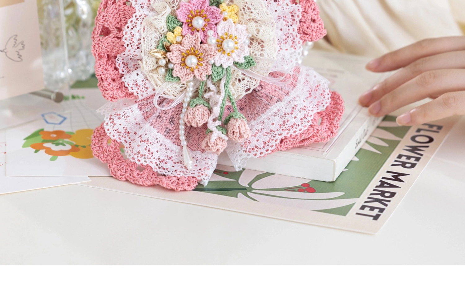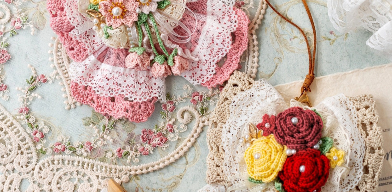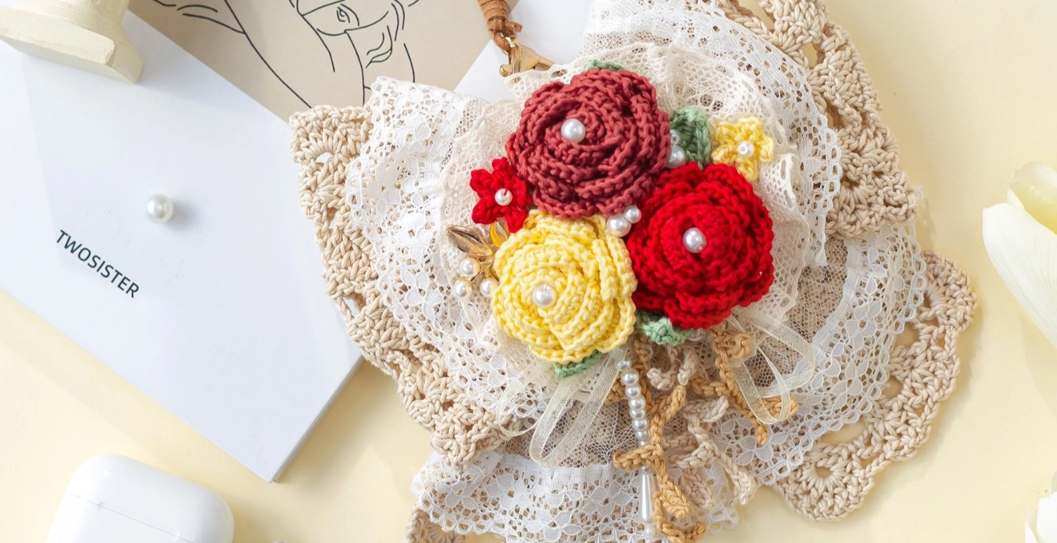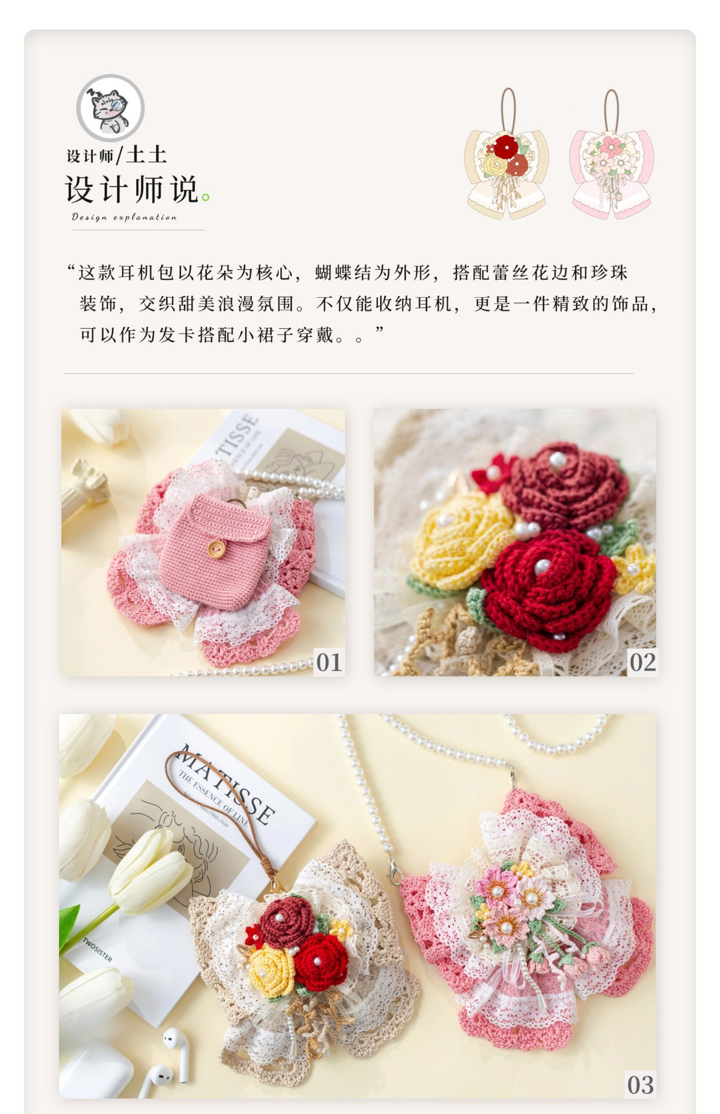 苏苏姐家蝴蝶结发夹耳机包手工diy编织钩针蕾丝线毛线团自制材料包