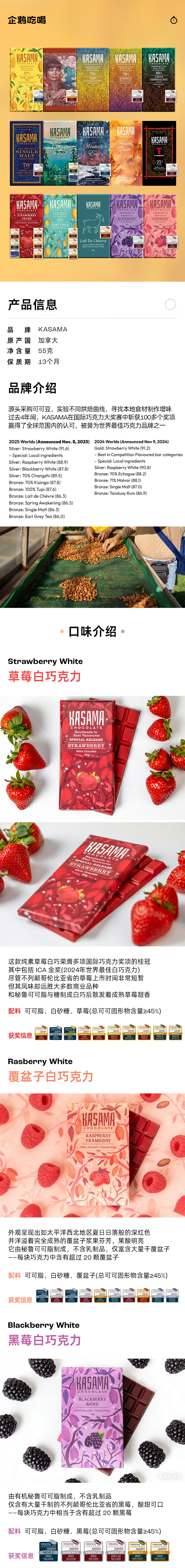 企鹅市集|加拿大KASAMA 黑巧奶巧増味巧克力55g 精品巧克力排块 多口味可选