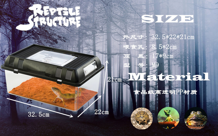 高透明的箱体大大增加爬虫宠物的观赏度,饲养盒带有挽手便于运输爬虫小宠,顶部四周斜角通风口更有利于空气流通,饲养盒之间能自由堆叠,不影响透气,顶部设有大型透明顶盖,可打开整理饲养箱及拿取爬虫小宠,侧面喂食孔可以快速便捷将活体饲料放到饲养盒内而不影响饲养盒内爬虫,大大减少惊吓。