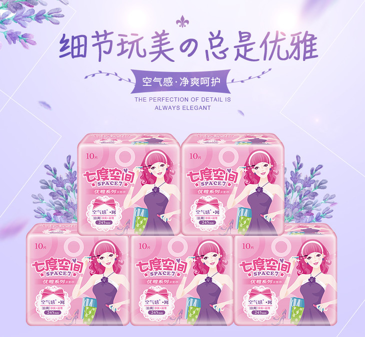 七度空间 日用卫生巾 特薄纯棉 10片245mm