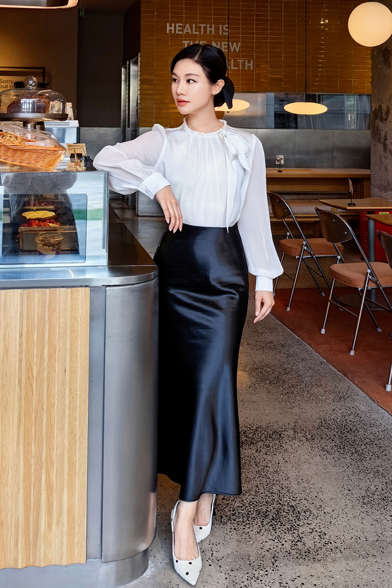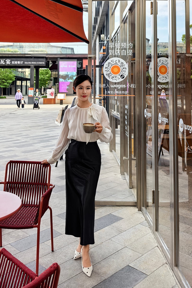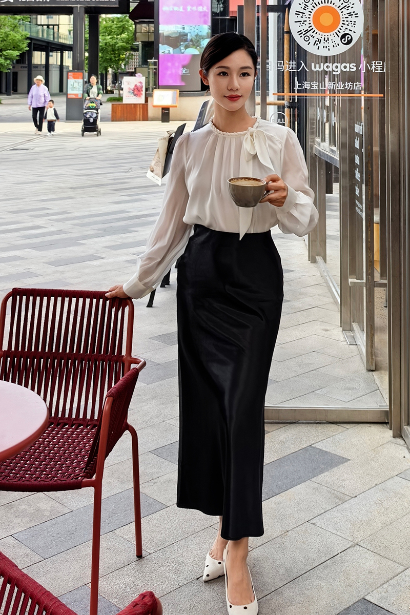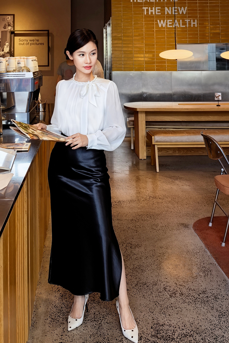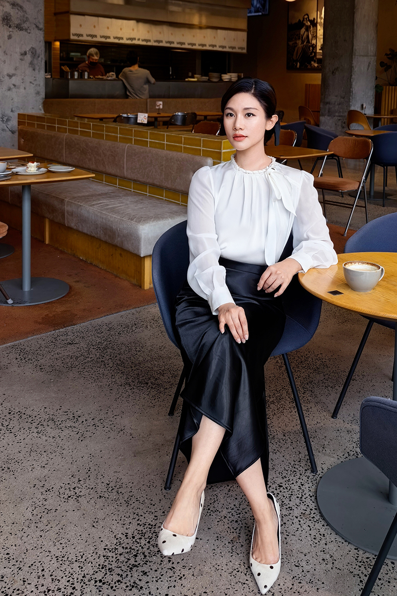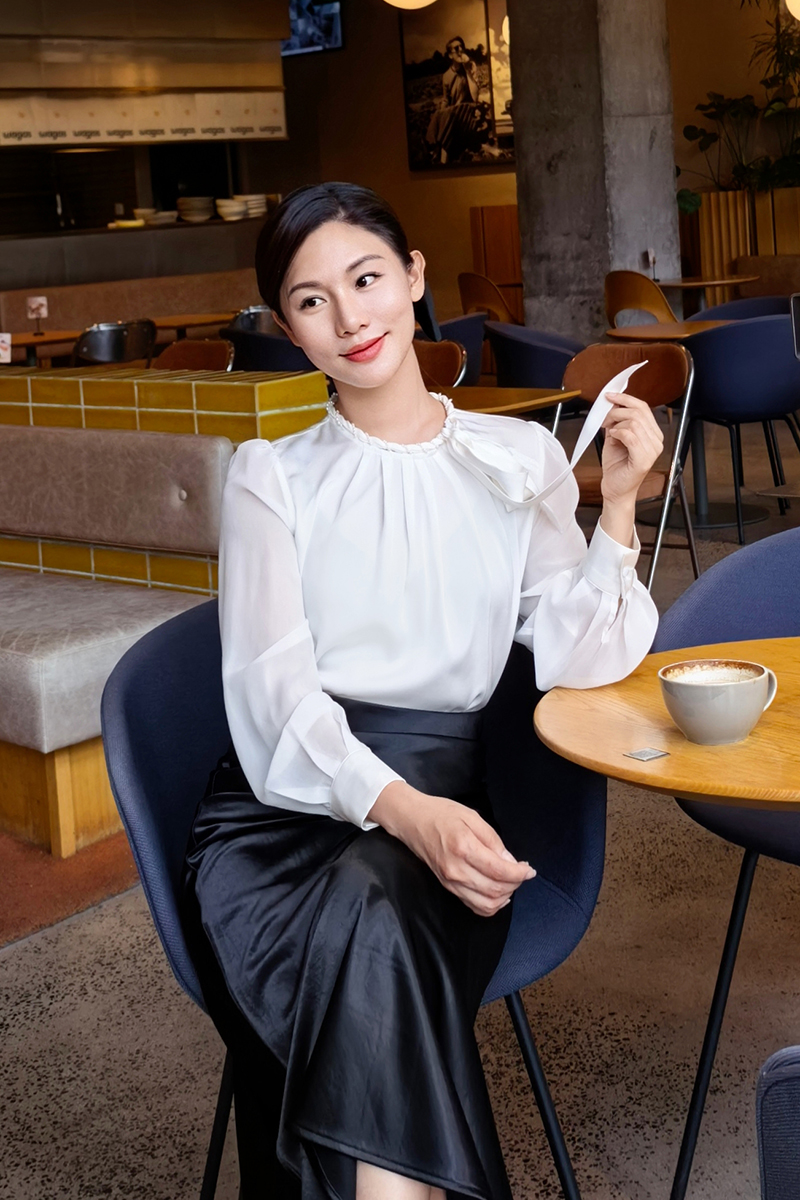 可作职场素色铠甲,亦可化宴饮间一抹留白诗行,配以翡翠或银饰,皆是「低调的华贵」。