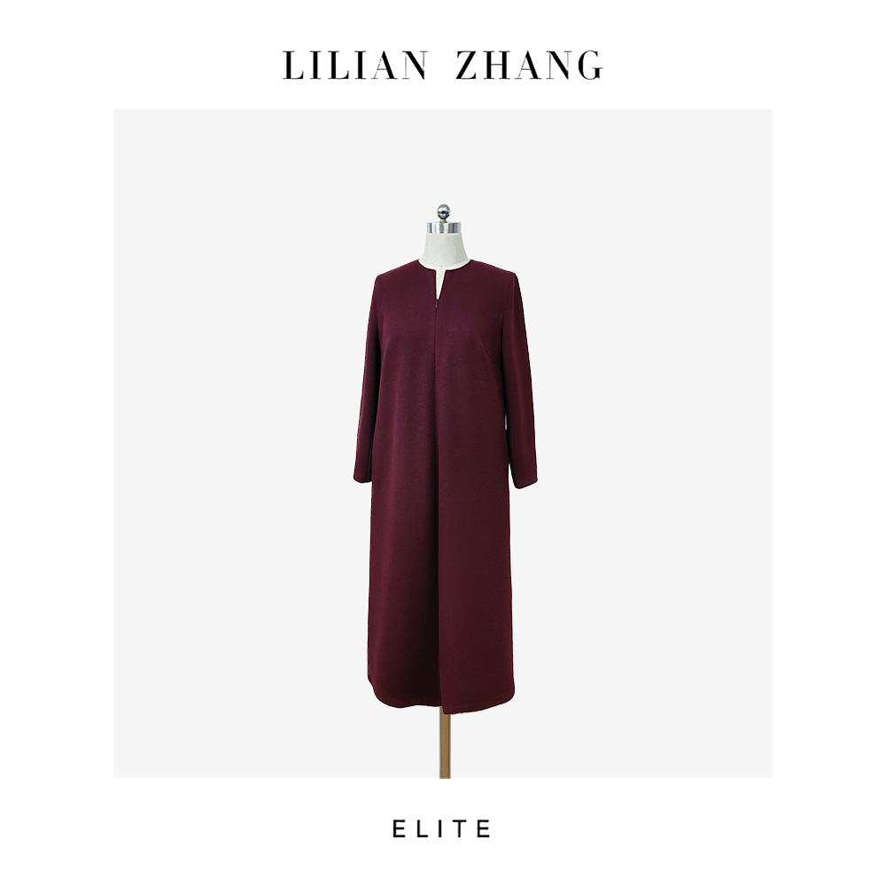 定制—静奢风 —老钱绒韵—法式浪漫—酒红诗意H型羊绒连衣裙 2501120