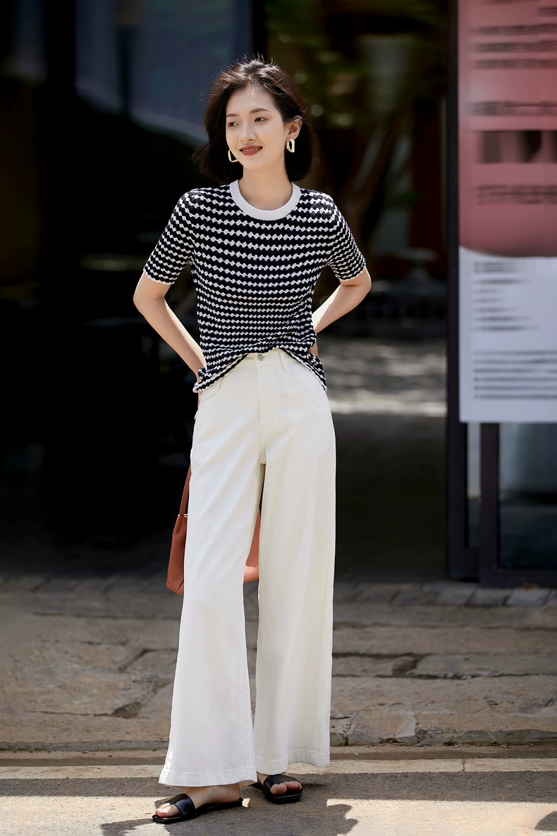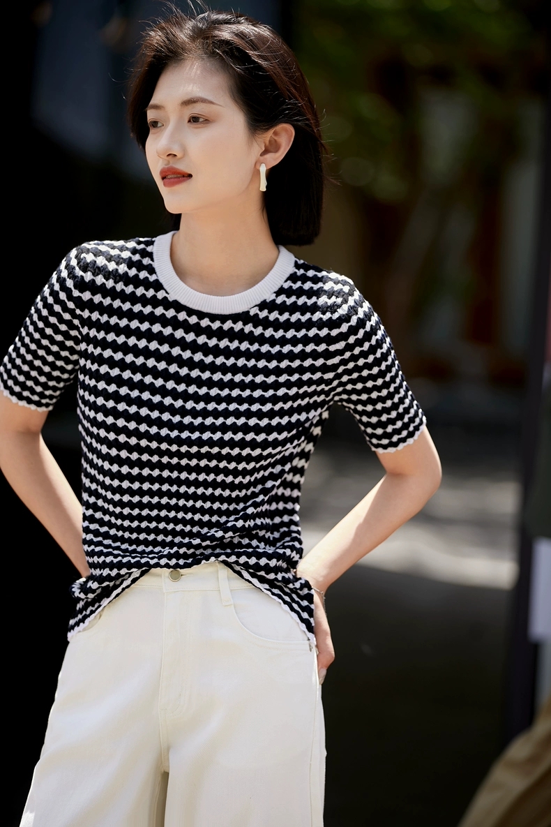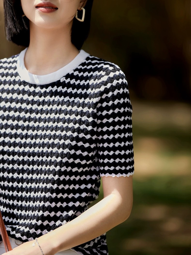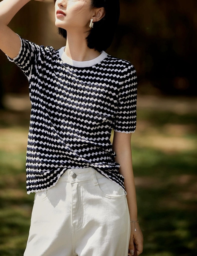 撞色波浪纹提花轻轻松松就能穿出慵懒的随意感~