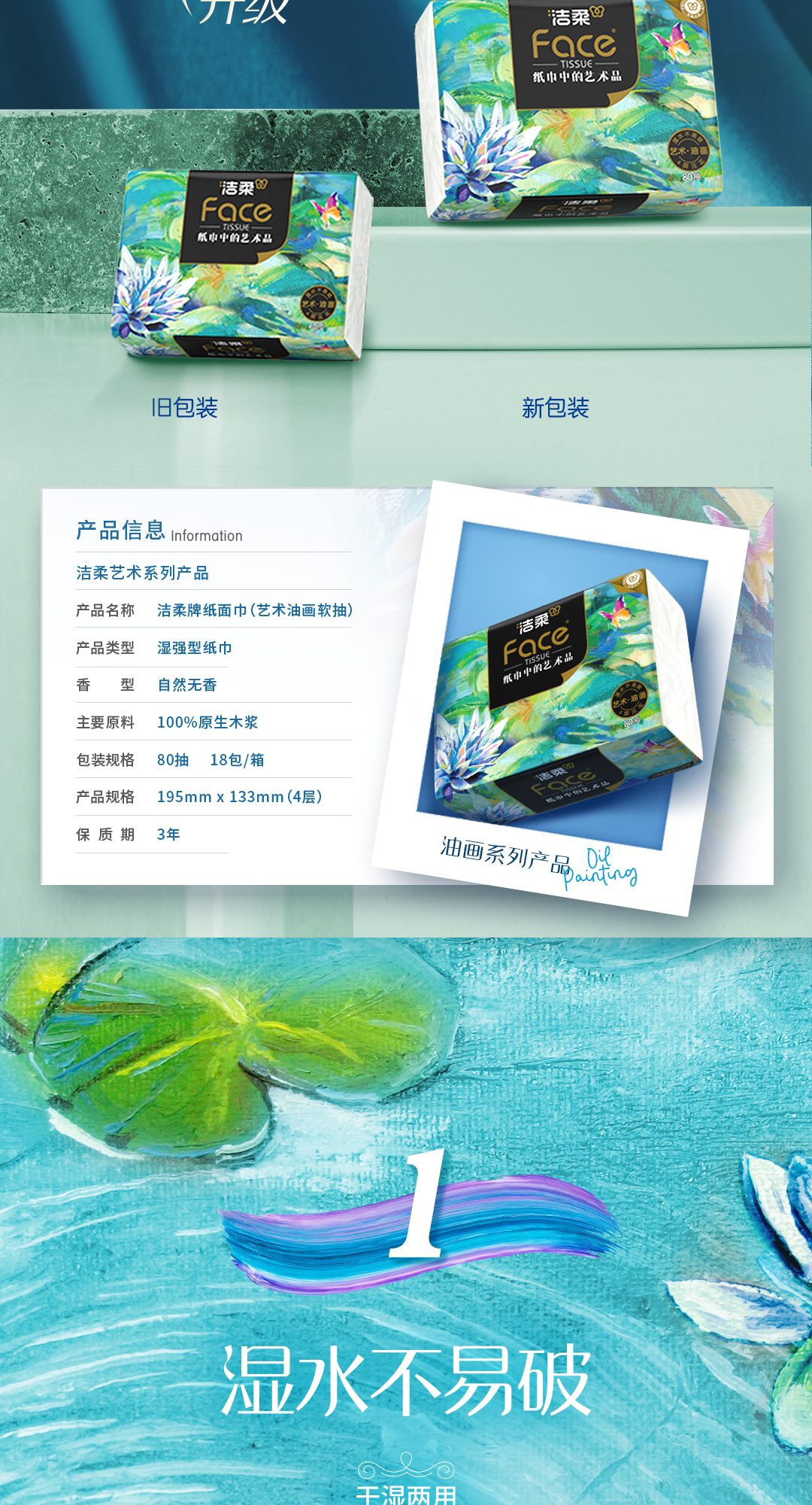 洁柔油画系列4层80抽 18包整箱装