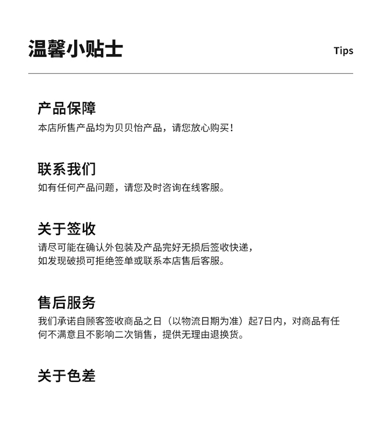 - 贝贝怡专注0-6岁婴幼儿服饰,坚持安全、柔软、舒适的产品理念,为千万中国家庭提供超高品质、安全可靠的婴幼儿服饰产品,妈妈放心,宝宝开心!