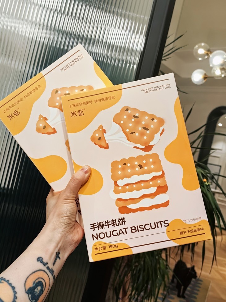 米惦的这一大块手撕香葱牛轧饼干,真的是我最近坠停不下来的小零食了!酥脆的葱香饼与拉丝的牛轧糖,太让人欲罢不能。。。每吃一块我都提醒自己,可以停了,但身体又很诚实,小手忍不住往嘴里塞,试吃时就连吃了6块,晚上又啃了3块,罪恶啊!我要寄给我的减肥搭子们!