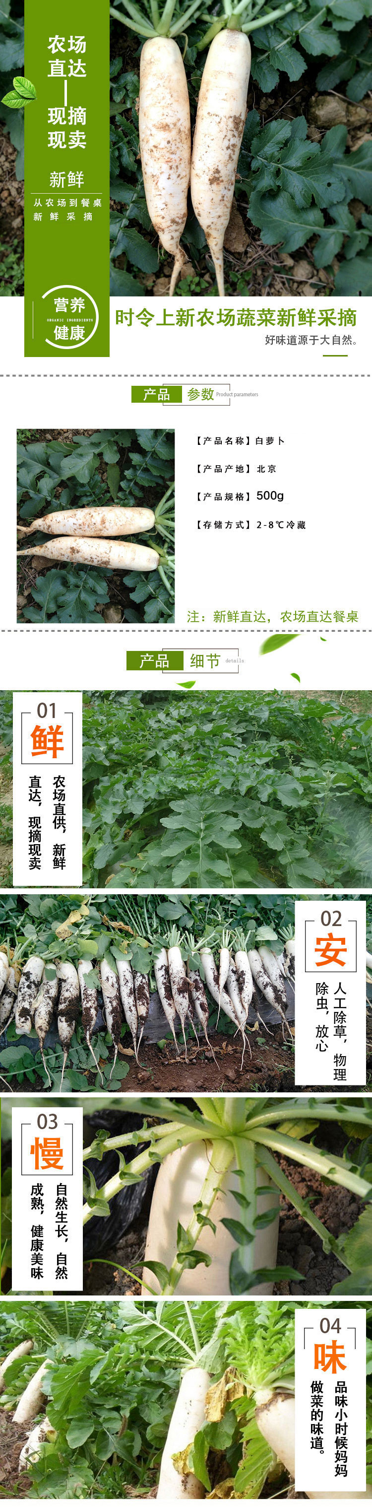 彩虹雨 新鲜有机蔬菜 白萝卜500g 欧盟认证全国发货满额包邮