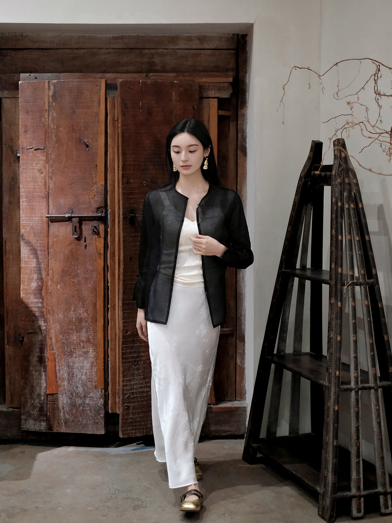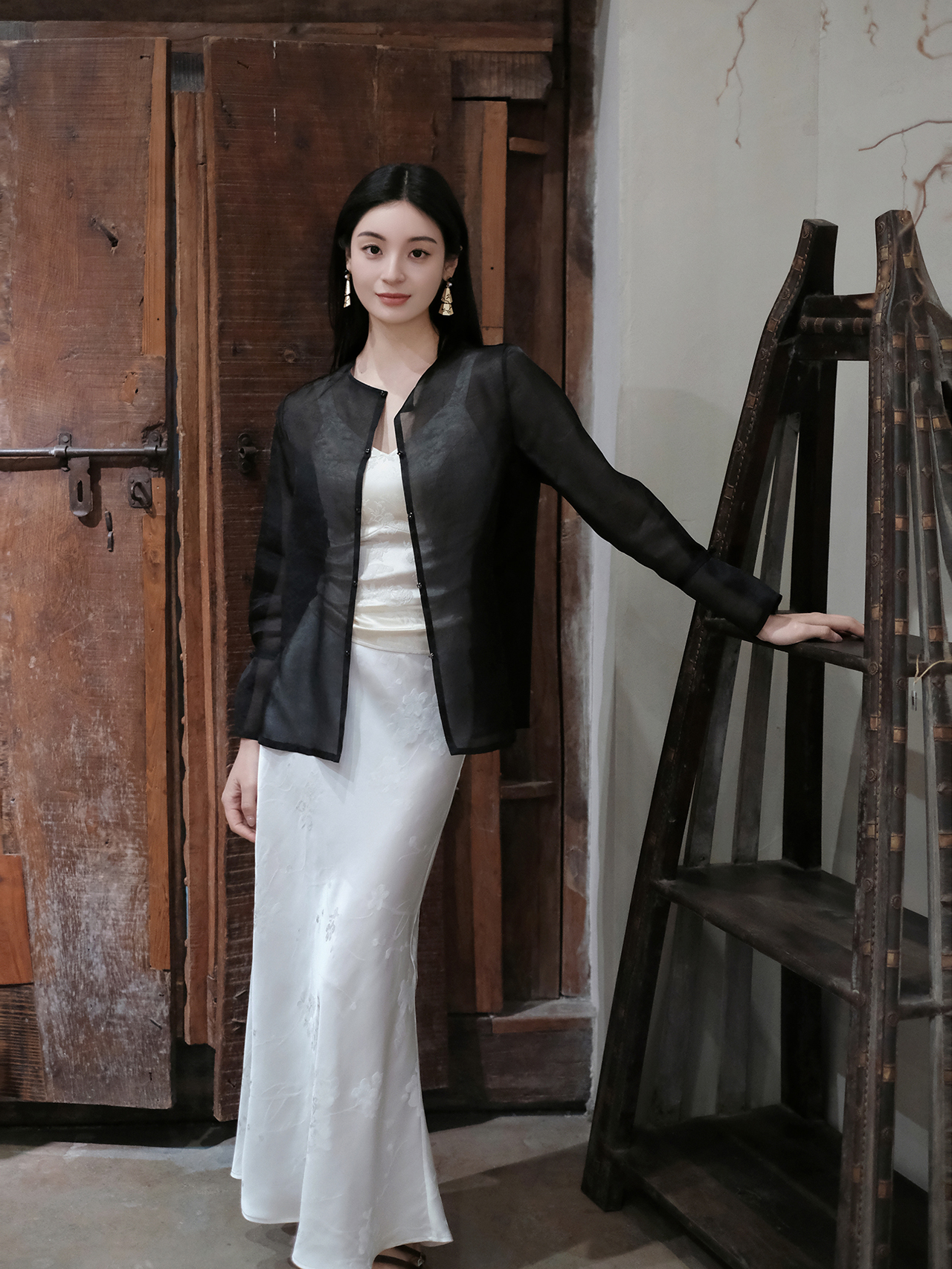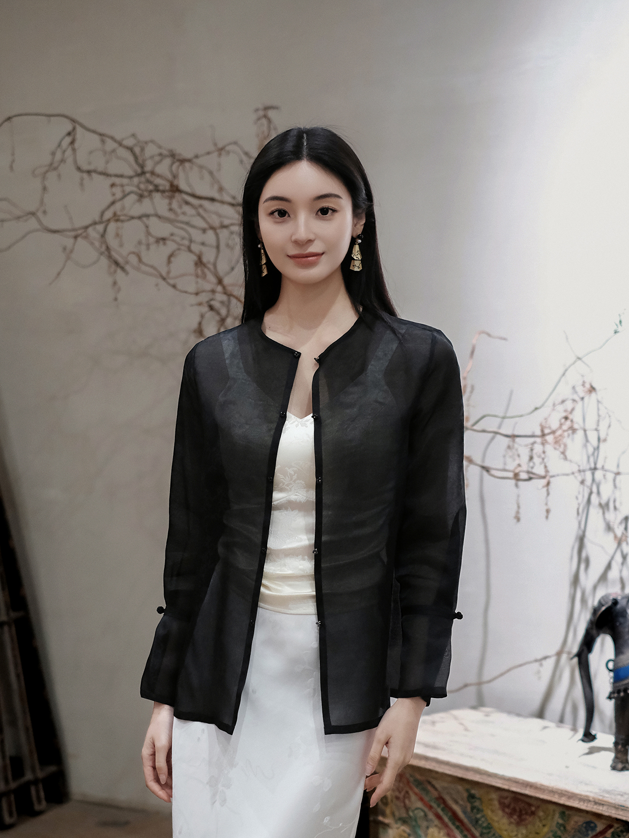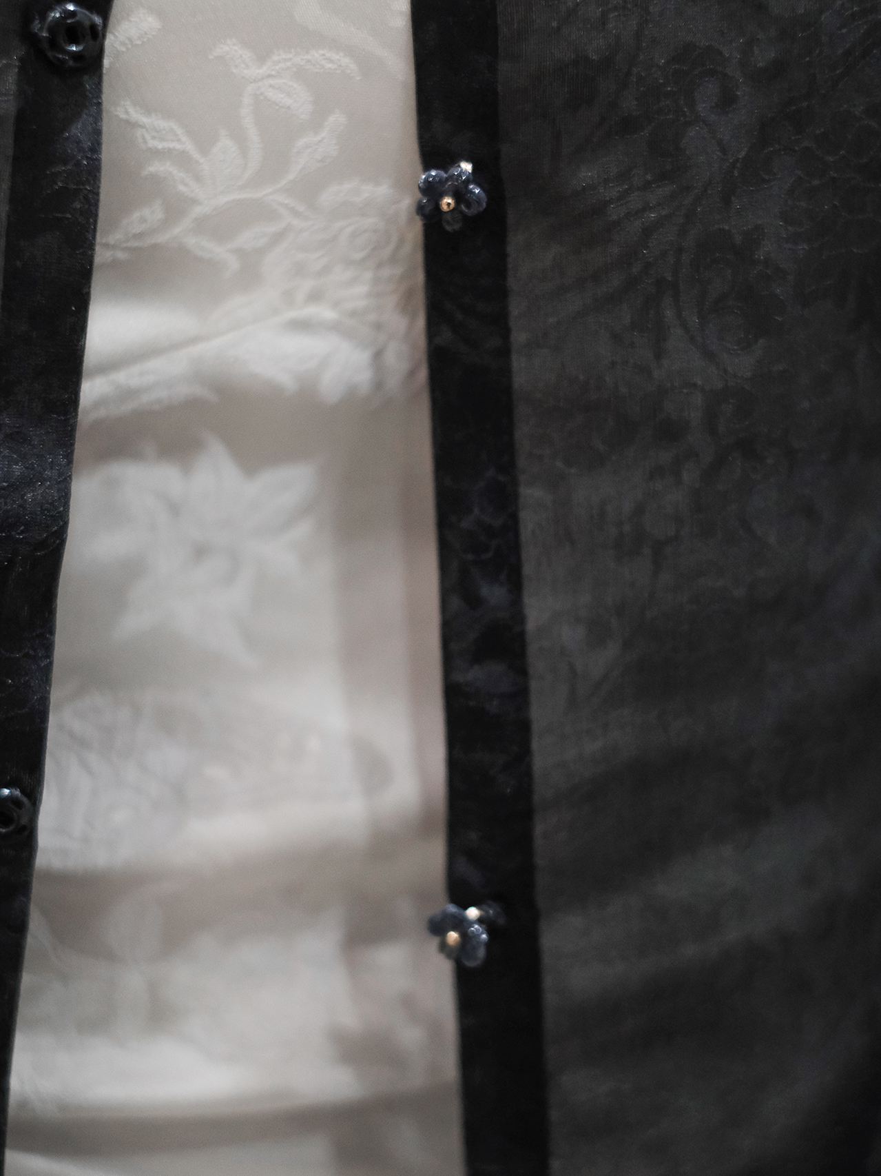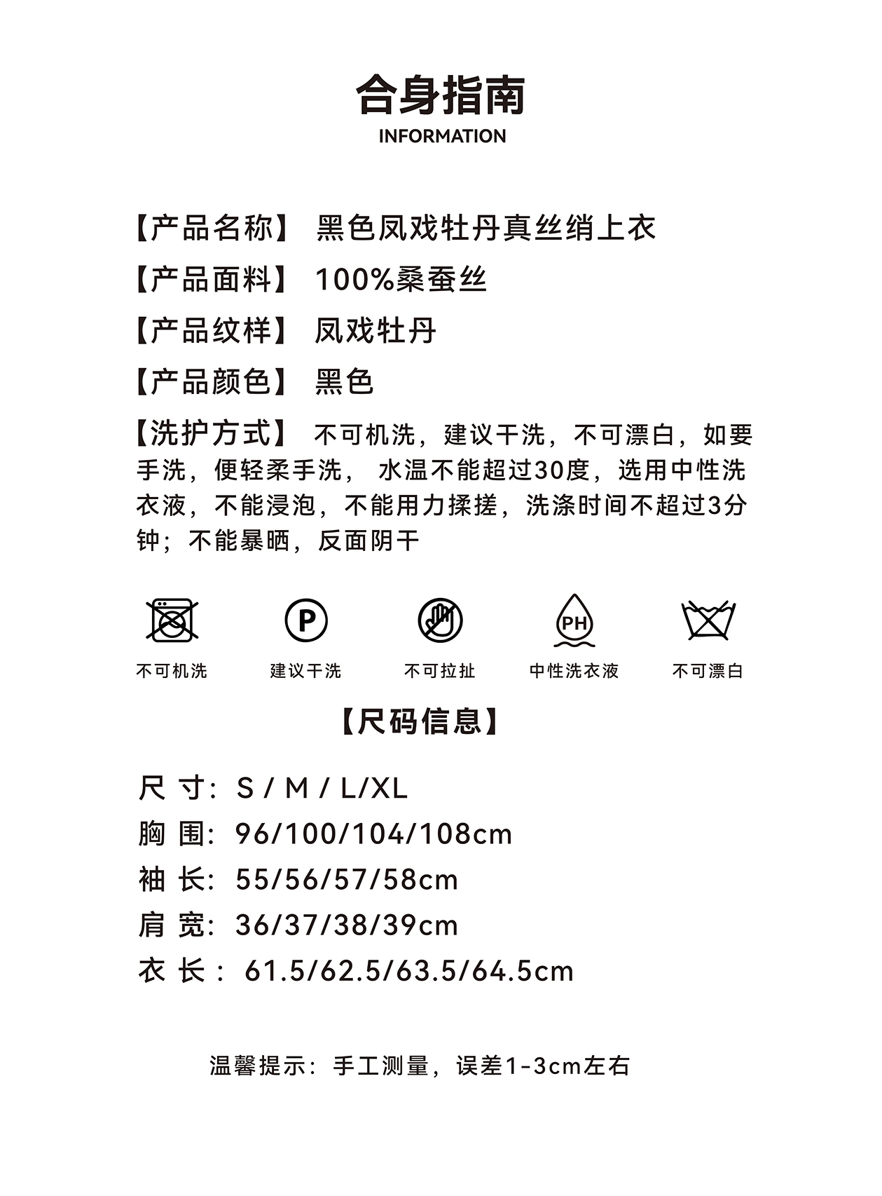 盛唐牡丹 | 黑色凤戏牡丹真丝绡上衣