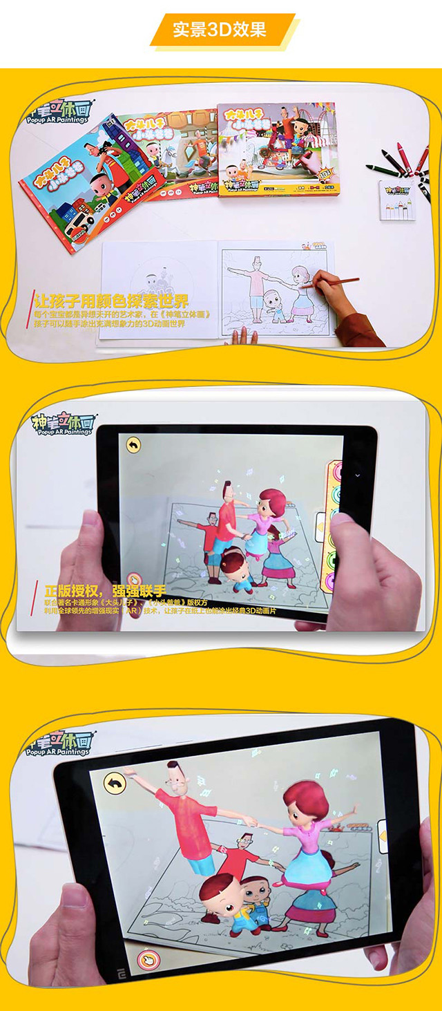 正版小熊尼奥神笔系列大头儿子立体画AR儿童涂色绘本3D立体儿童涂乐