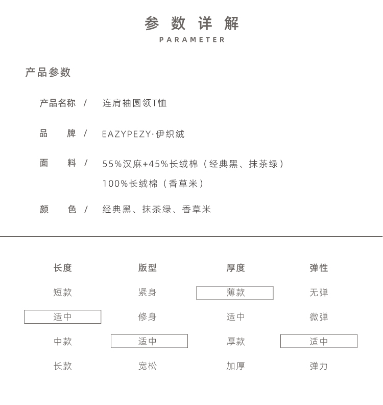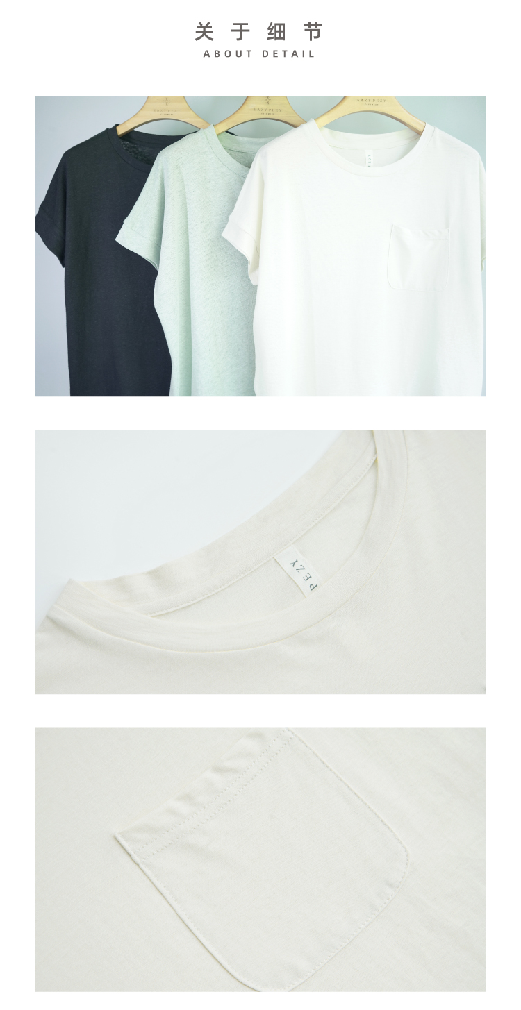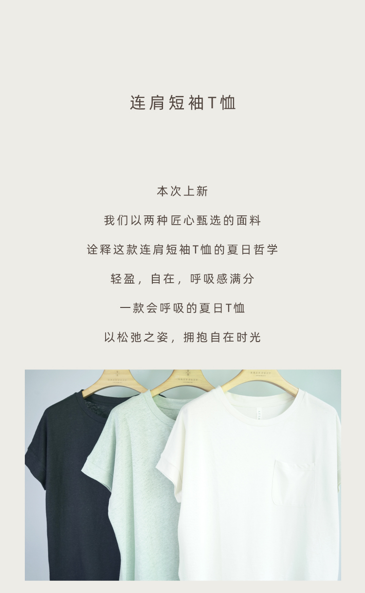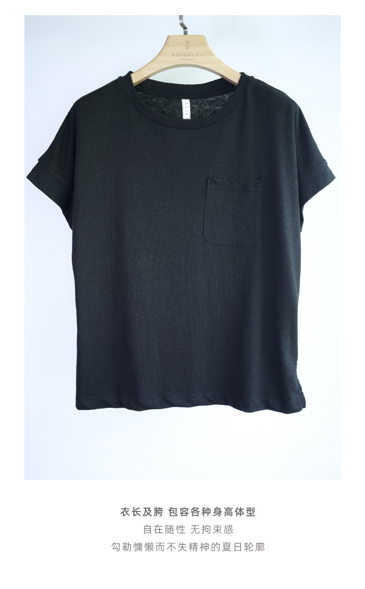 棉麻连袖圆领T恤