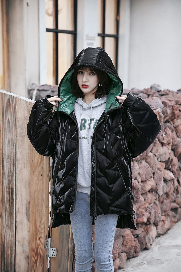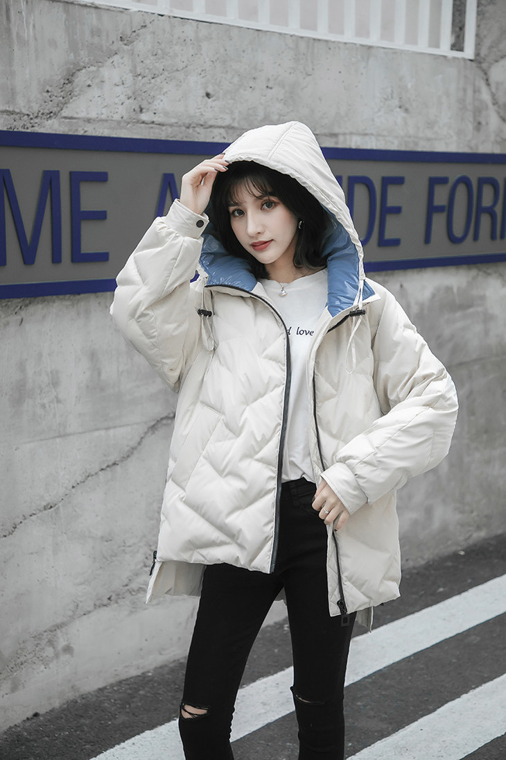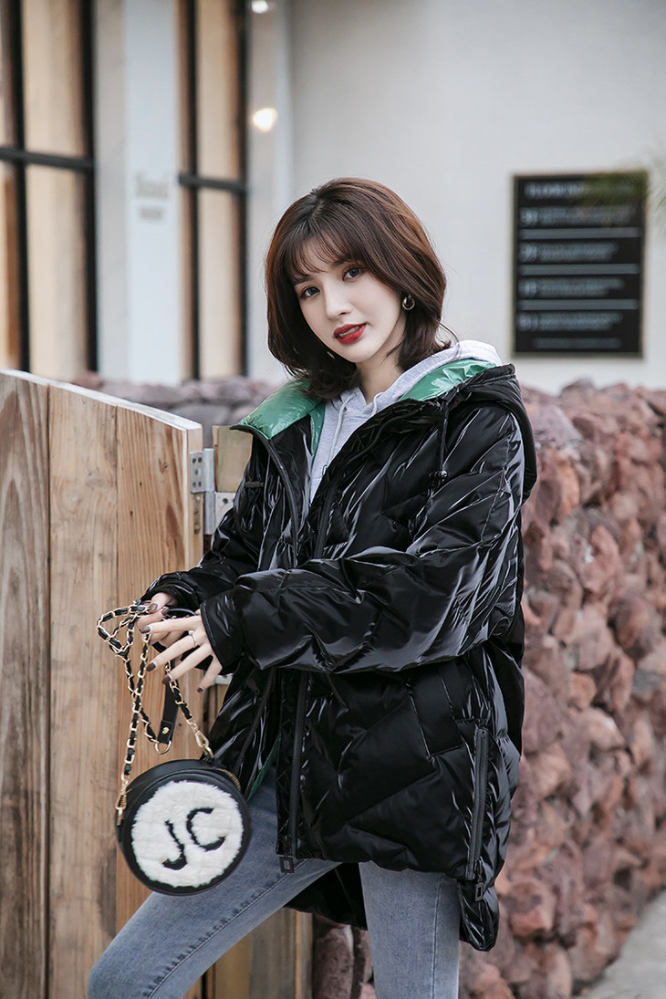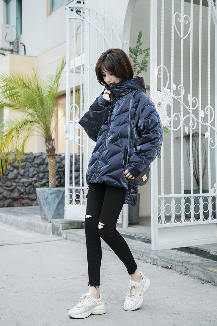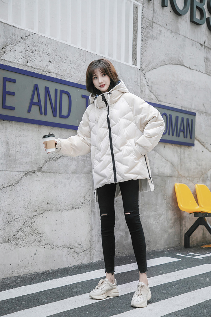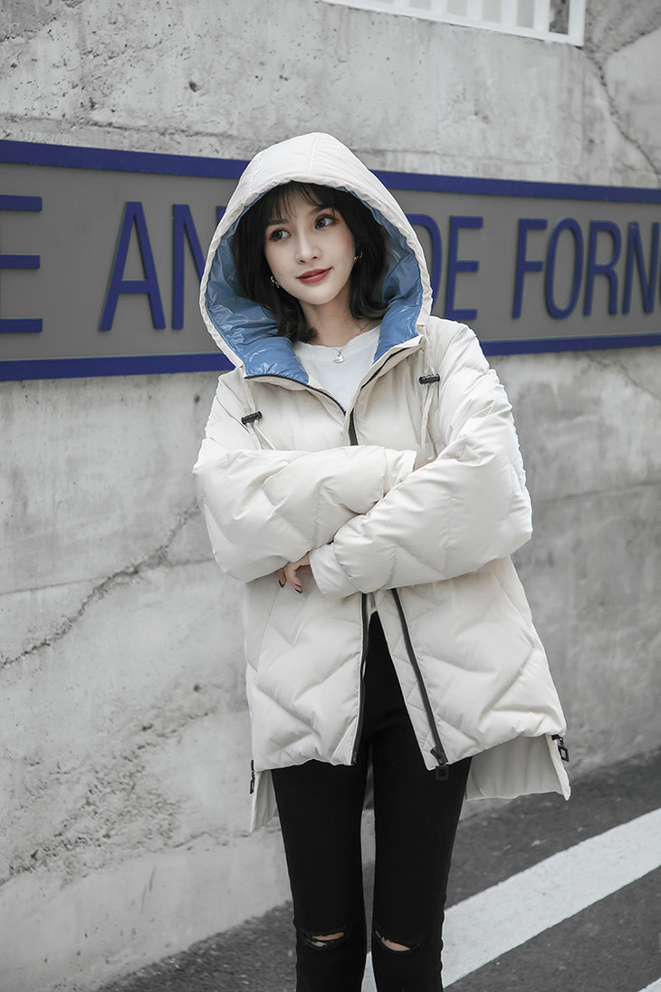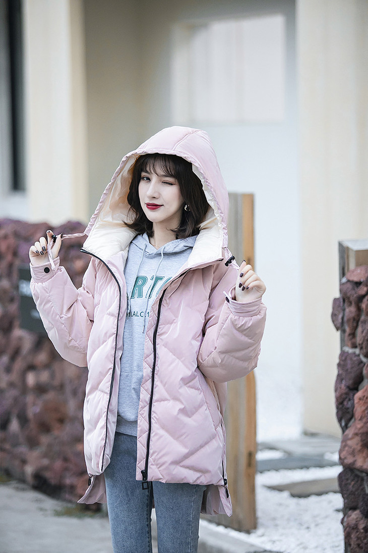 【女装羽绒服】*羽绒服女中长款韩版潮连帽加厚亮面白鸭绒外套