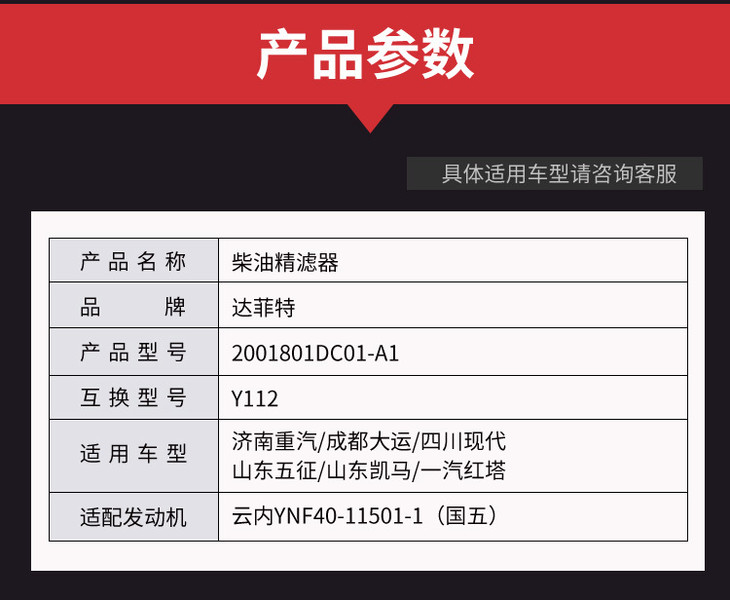 达菲特燃油滤清器滤芯 轻卡专用2001801 云内YNF40-11501-1 卡车之家