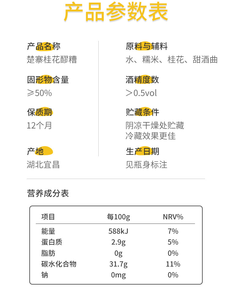 【宜昌助农馆】楚寨桂花米酒790g玻璃瓶装手工酒酿醪糟