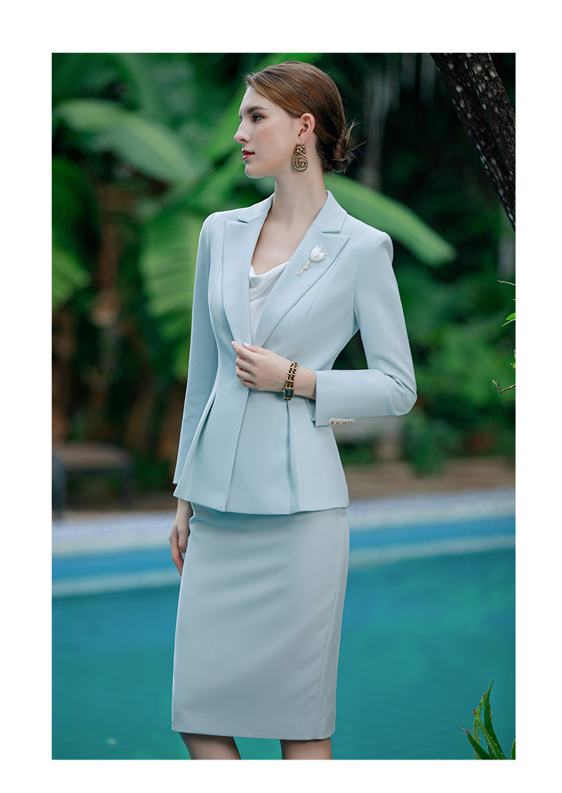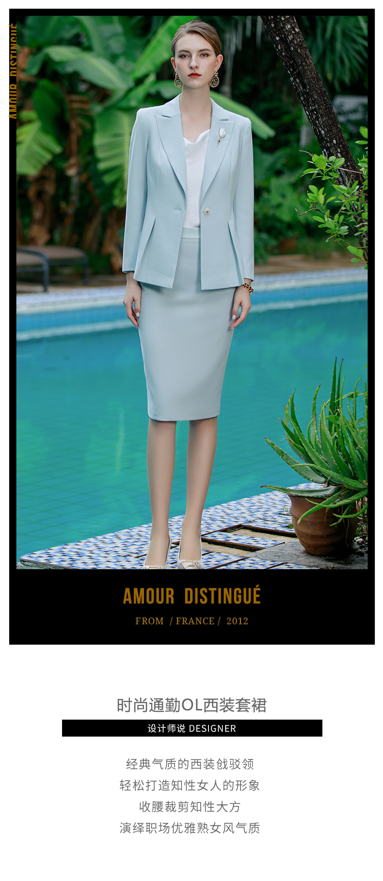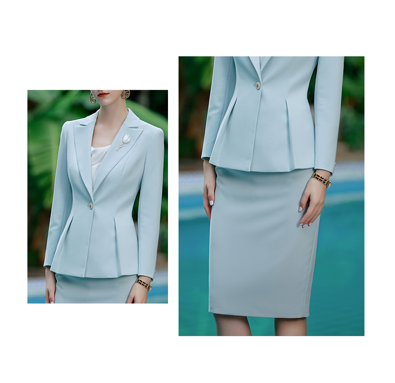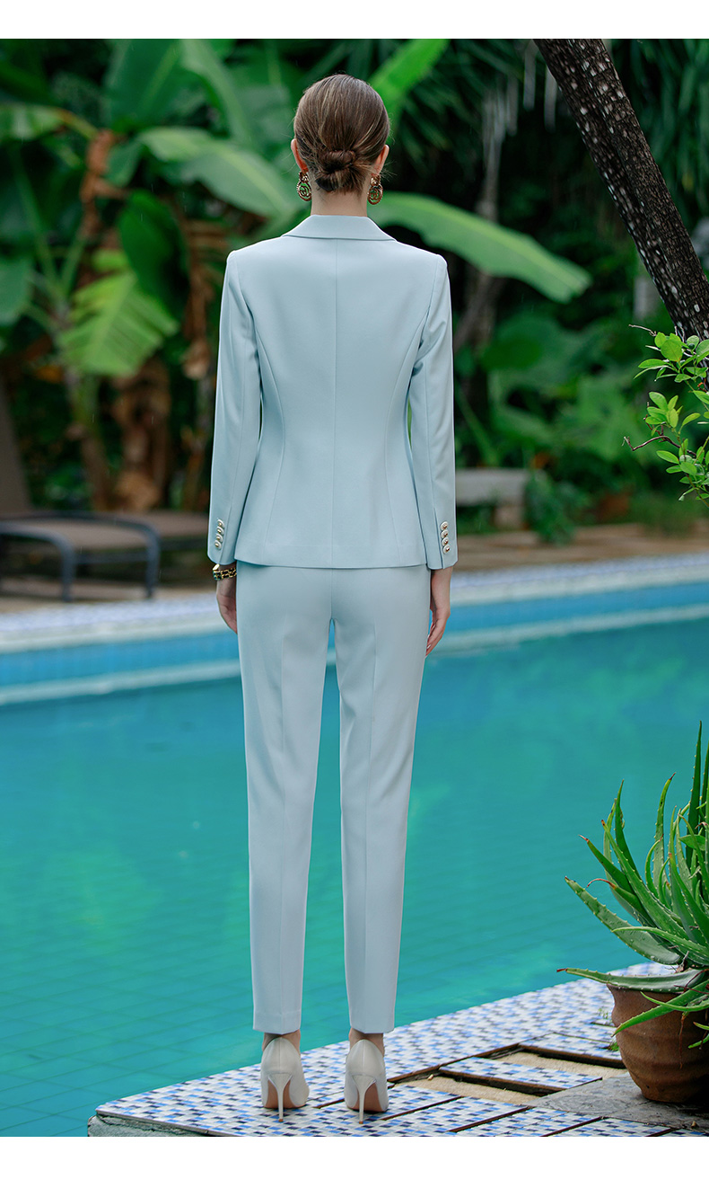 AD教师职业装女套装2023春季新款韩版修身小西服外套水蓝色正装裤