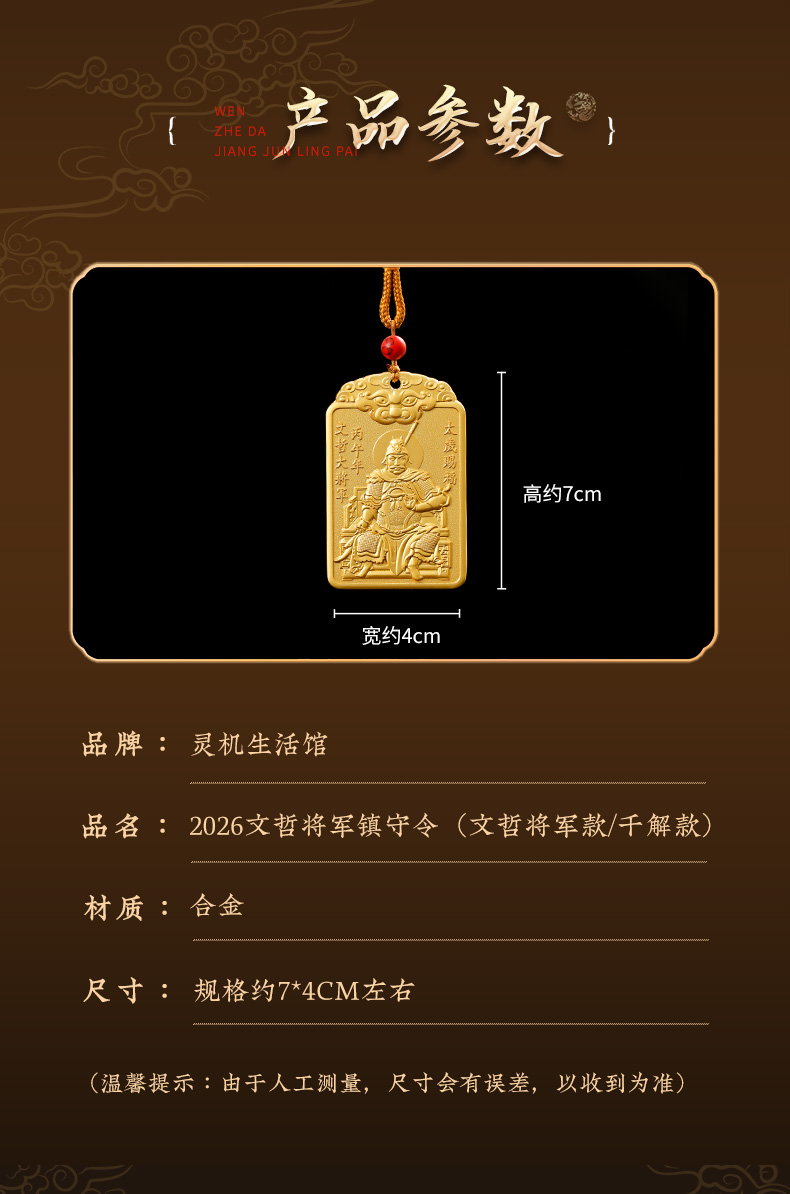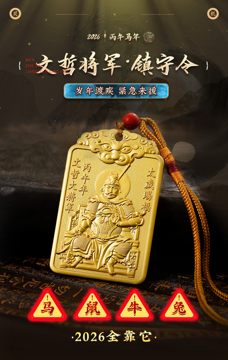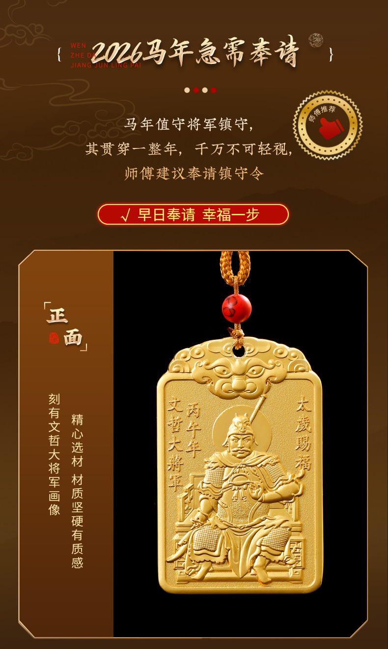 【岁岁调理】灵机生活馆2026丙午年文哲大将军镇守令牌马/鼠/牛/兔生肖吉祥物