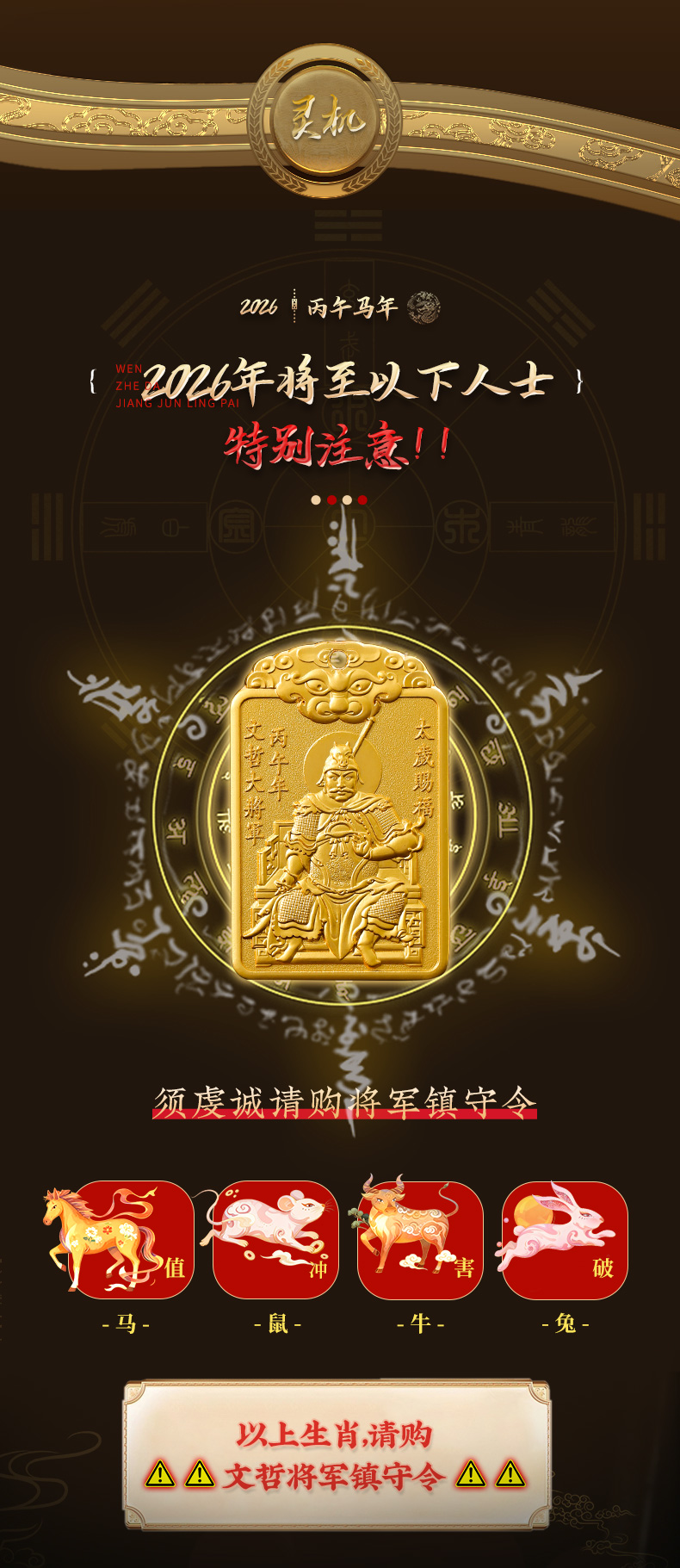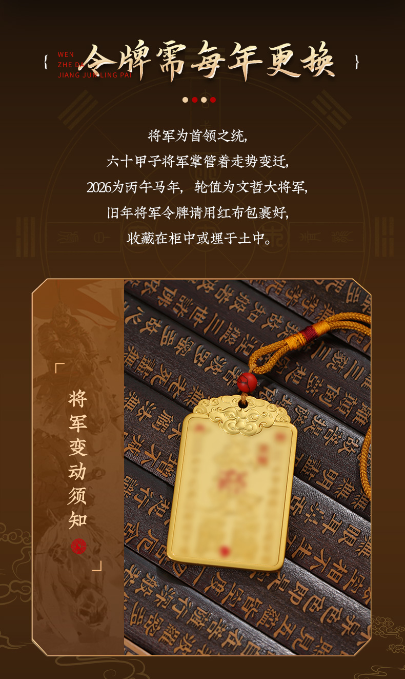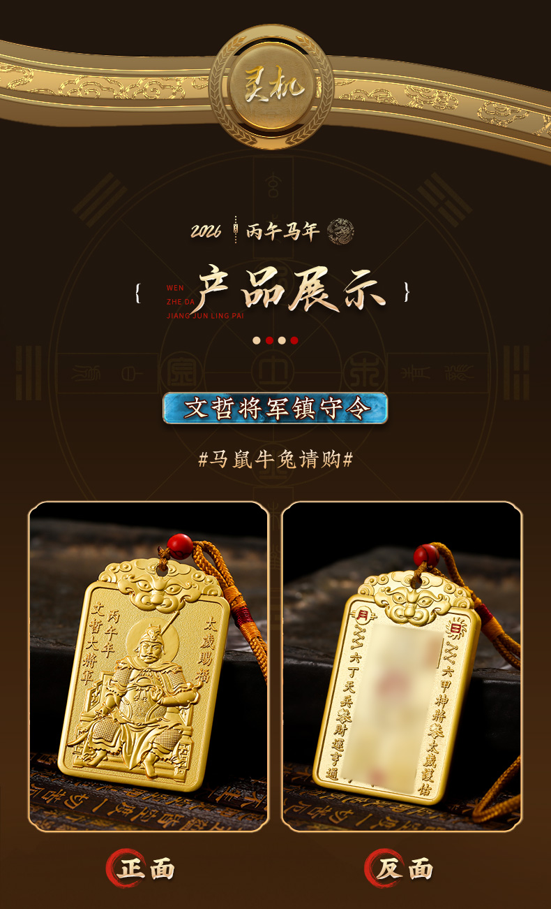【岁岁调理】灵机生活馆2026丙午年文哲大将军镇守令牌马/鼠/牛/兔生肖吉祥物