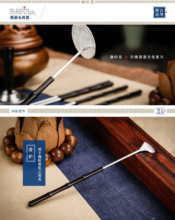 迦印堂丨黑檀纯铜镀银七件套 香道入门套装