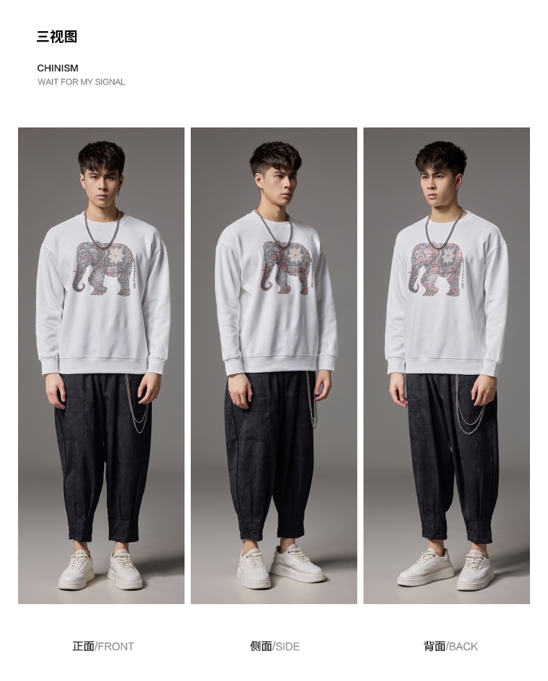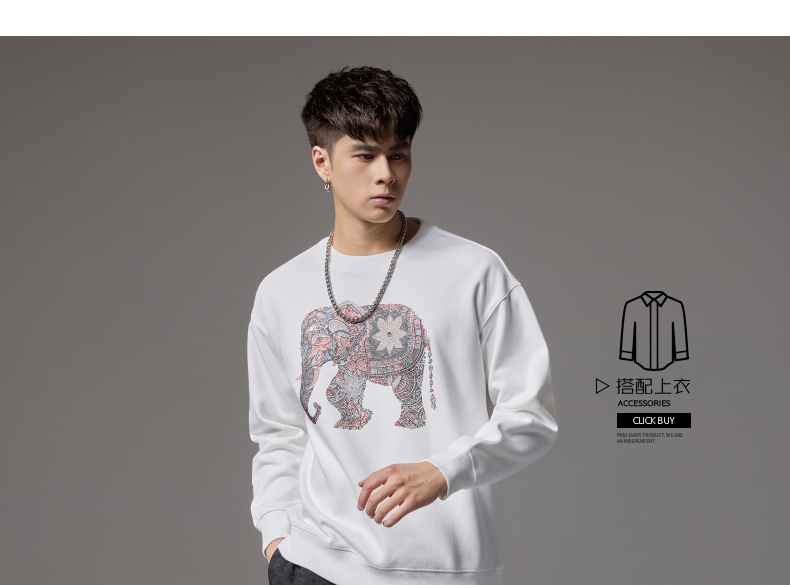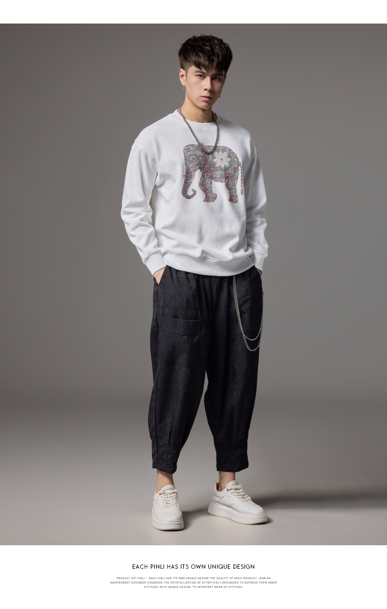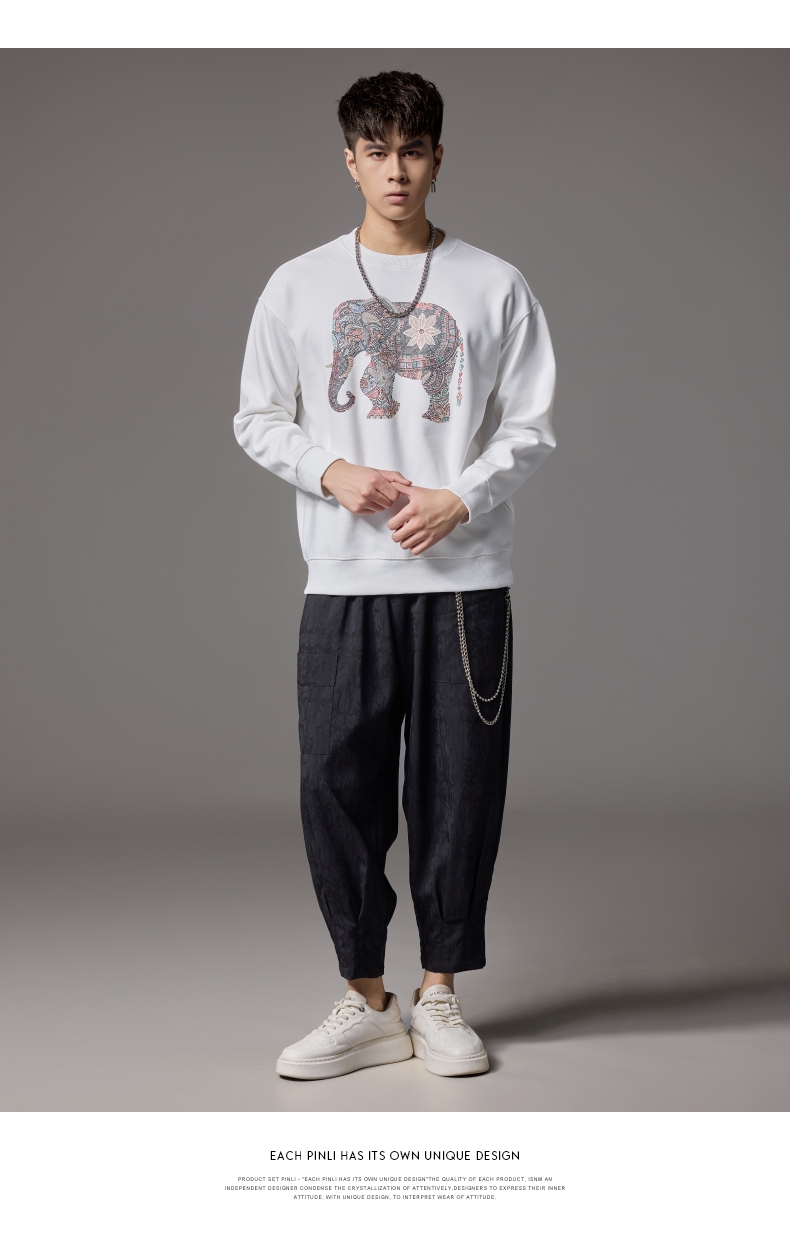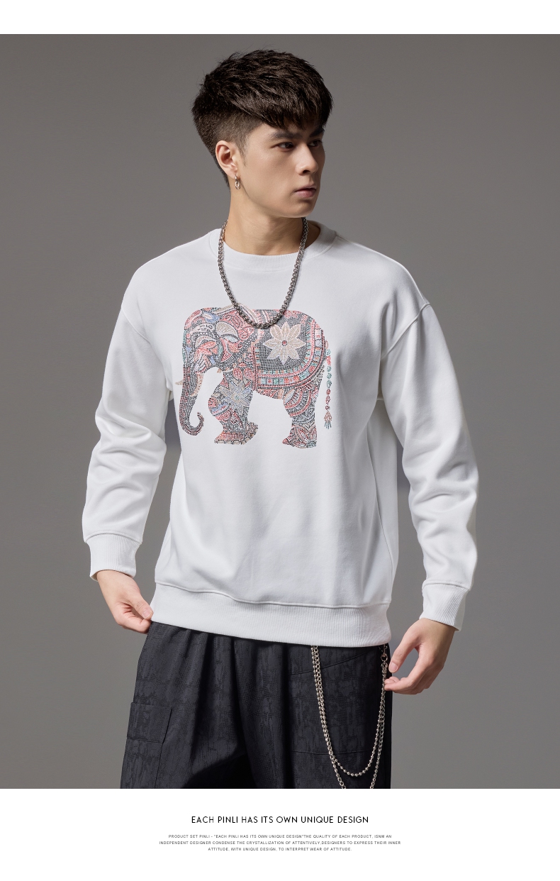 PINLI品立2024秋季新款男士圆领落肩大象烫钻套头卫衣BG243109027