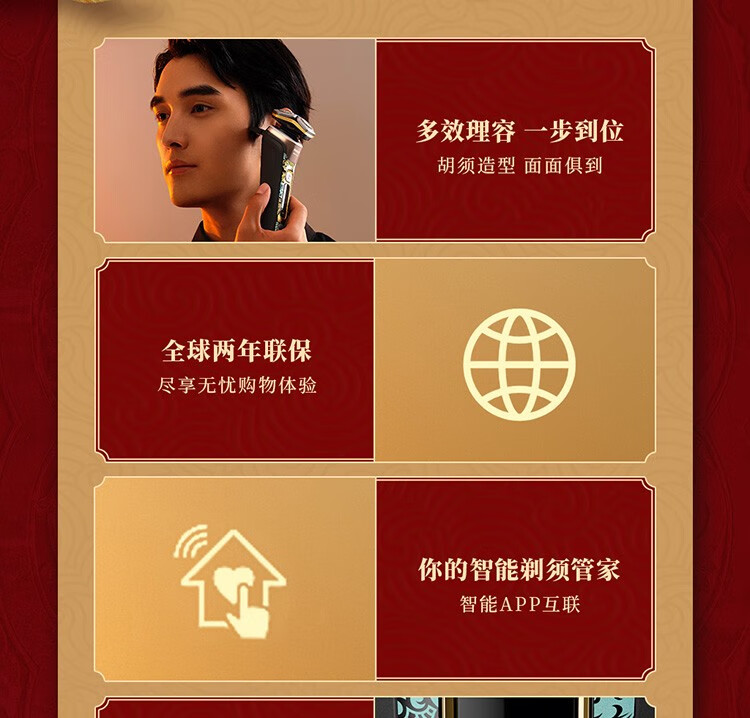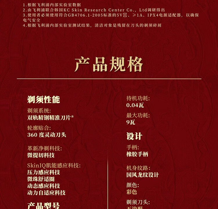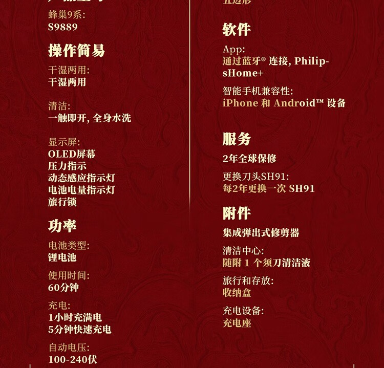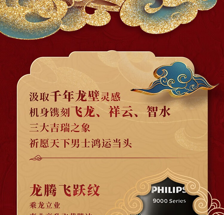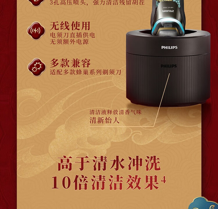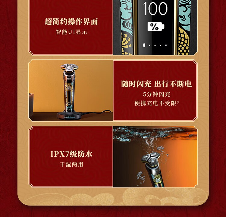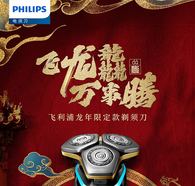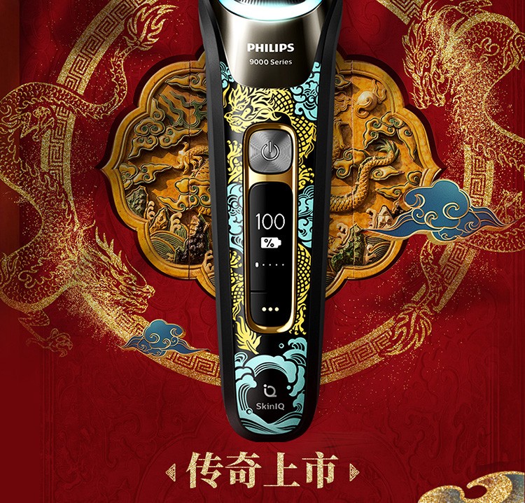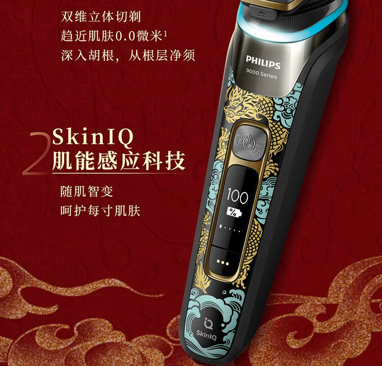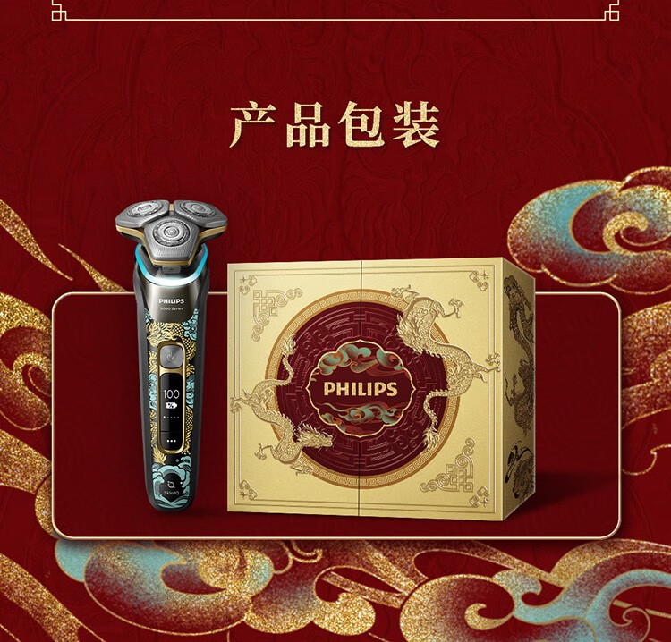 【6F】飞利浦(PHILIPS) 电动剃须刀SkinIQ蜂巢9系智能光感刮胡刀 S9889/88【龙年限定礼盒款】