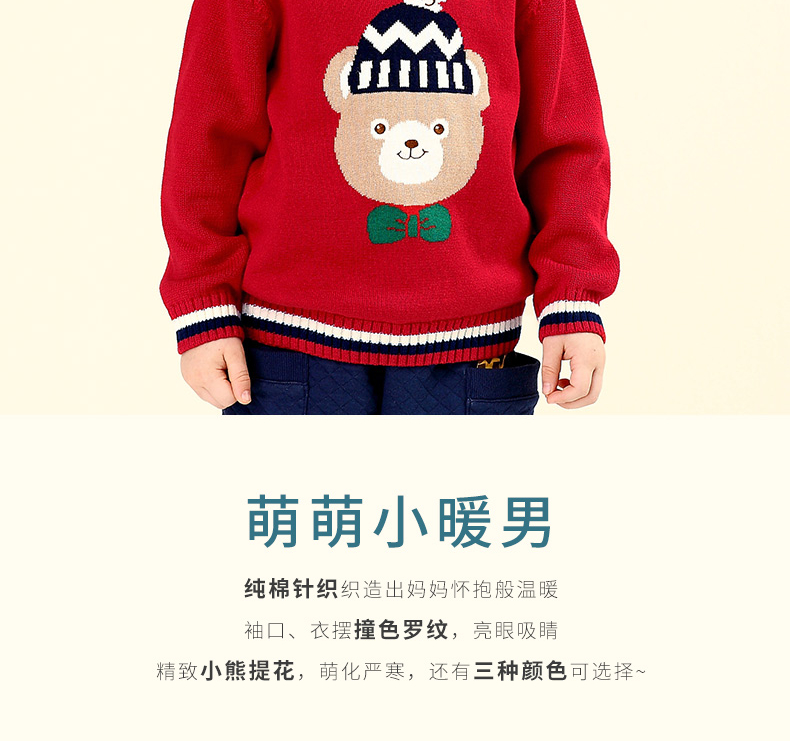 贝贝怡童装新款秋季男童宝宝时尚卡通套头帅气毛衣针织衫毛线衣203S2472