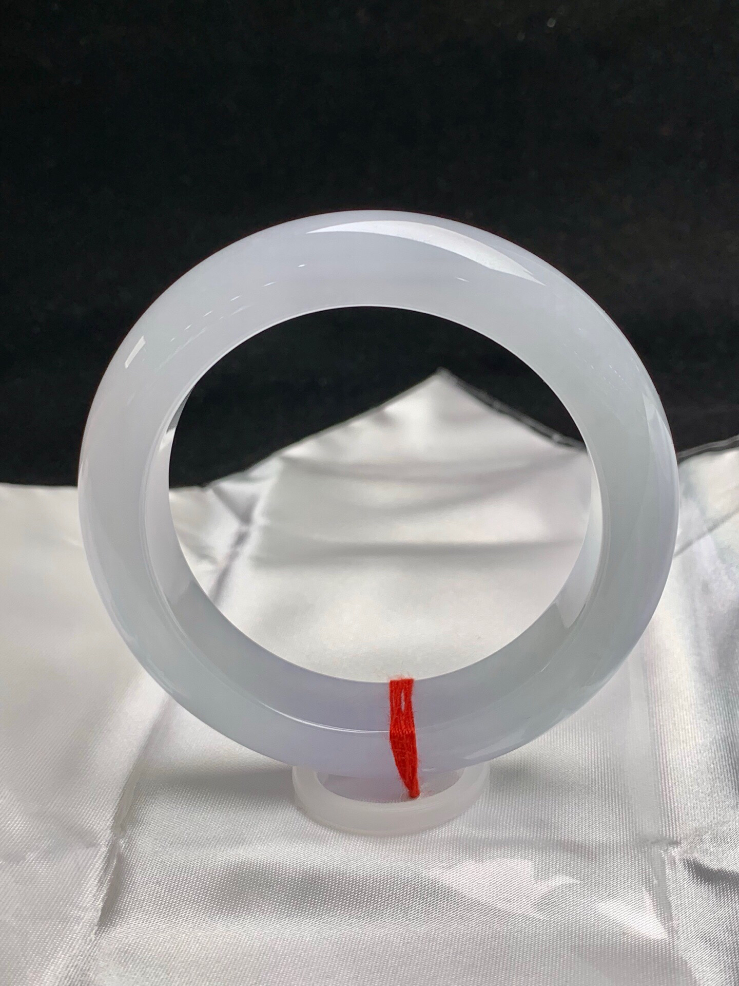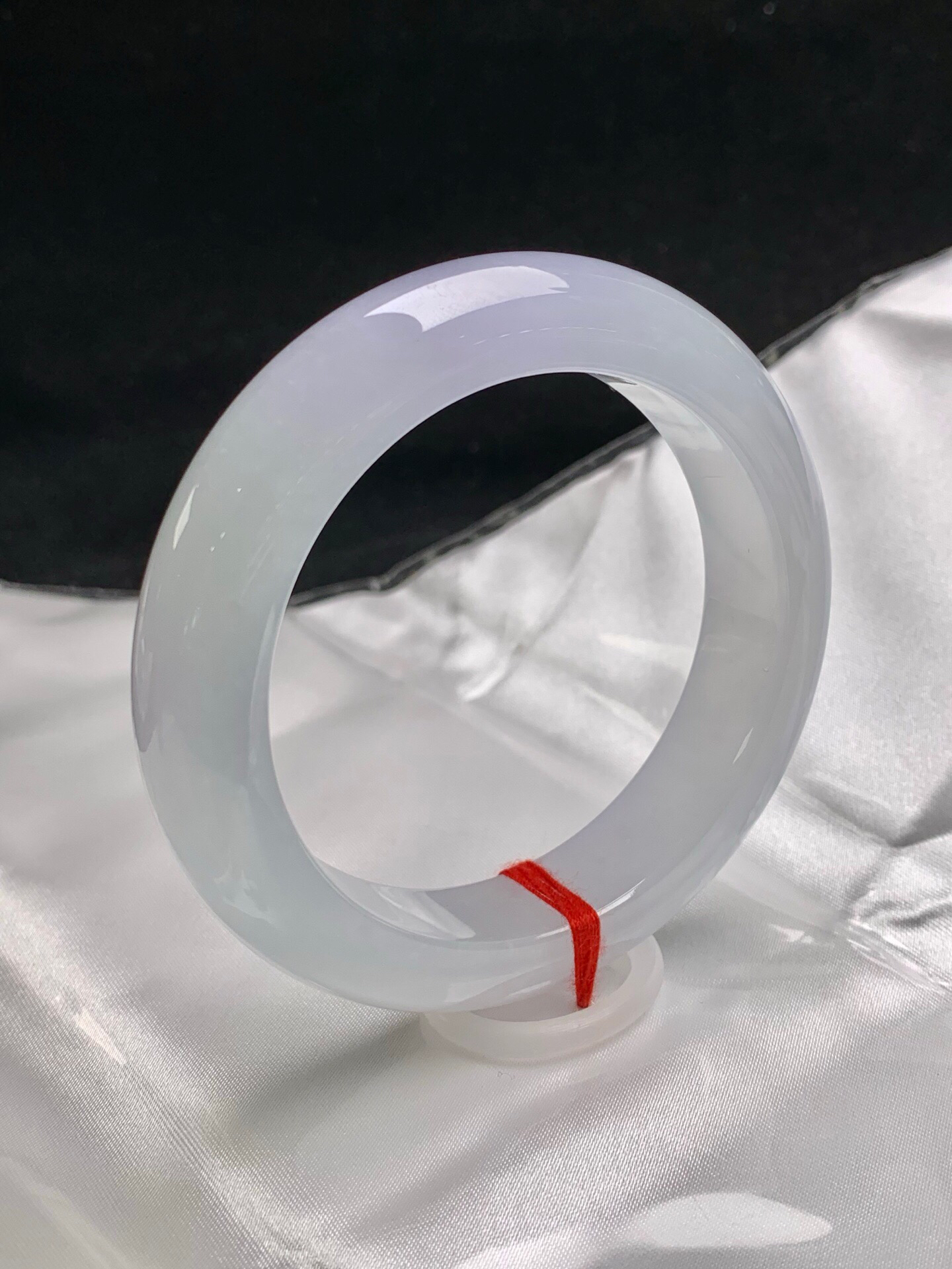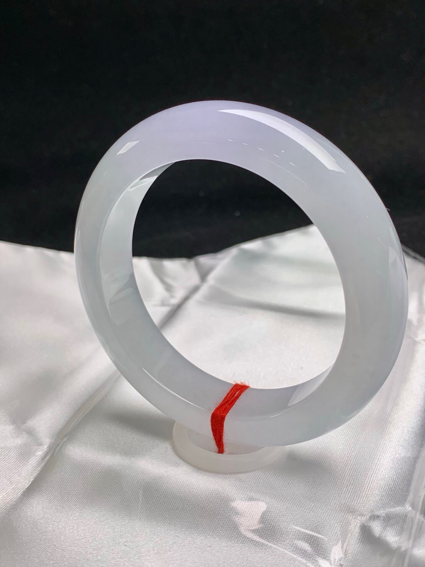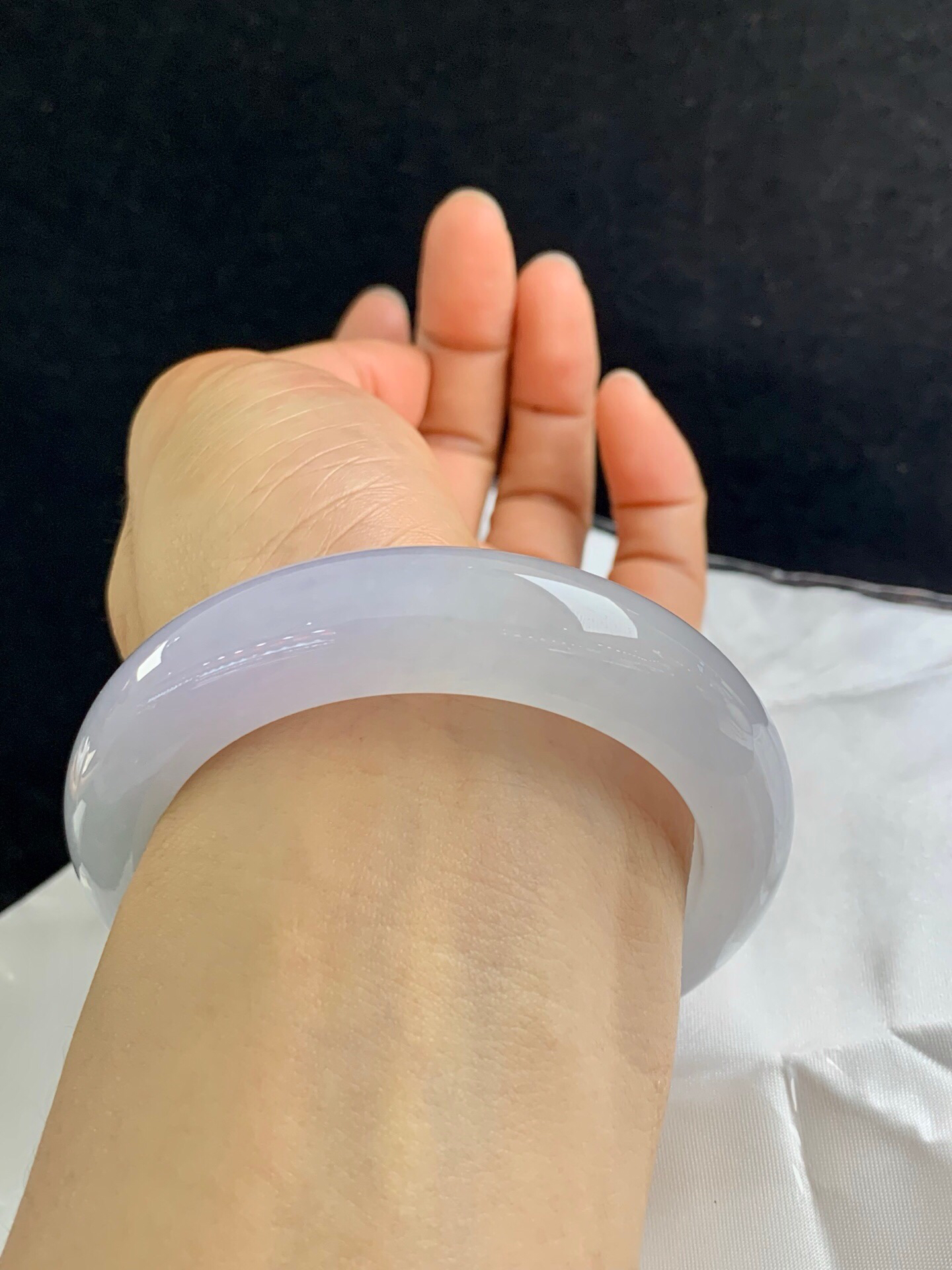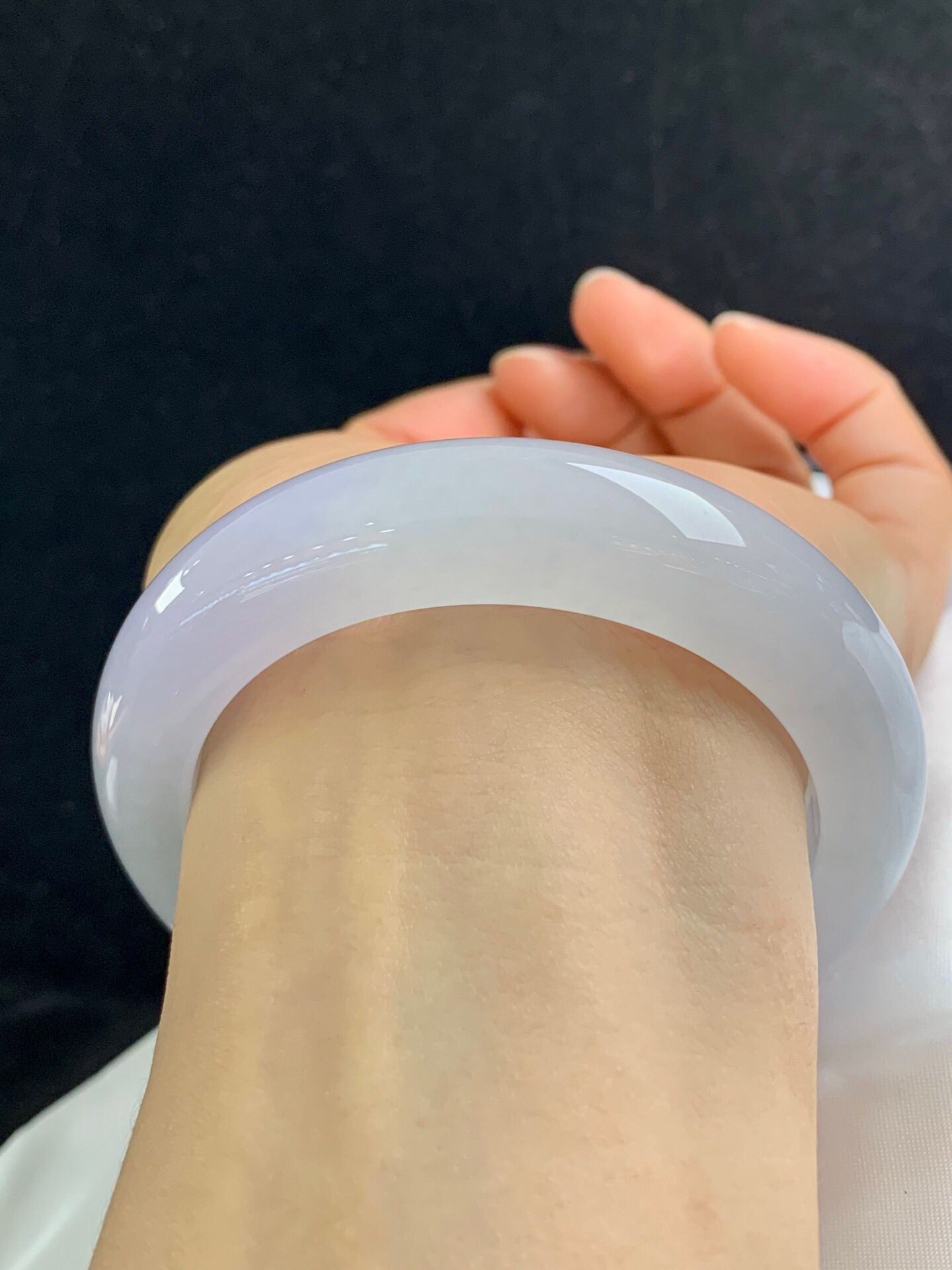 612622,57.3其实,冰飘紫正圈平安镯,白底飘粉紫色,整体清爽淡雅,条形厚装大气,完美无裂,尺寸:57.3-14.3-10.3,超值价💰87000 #优石客珠宝#香玉荟萃