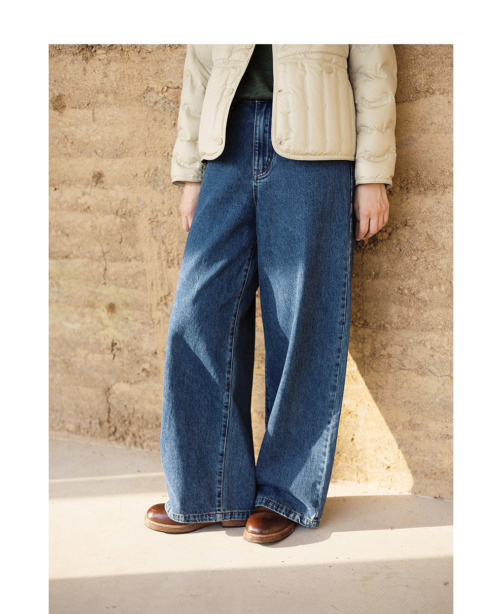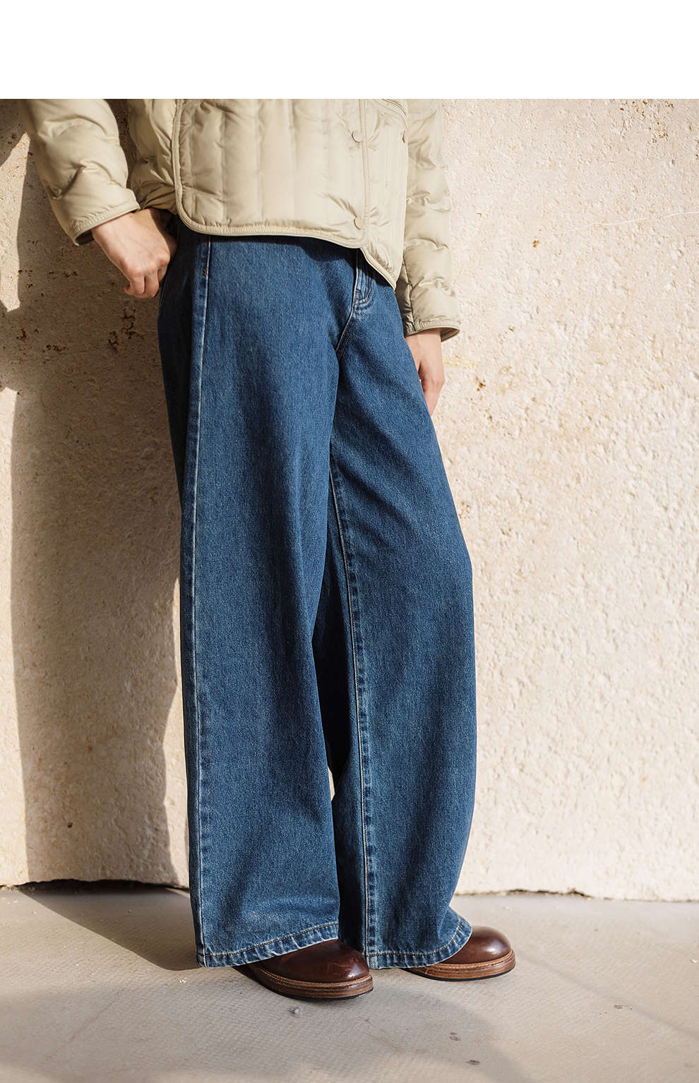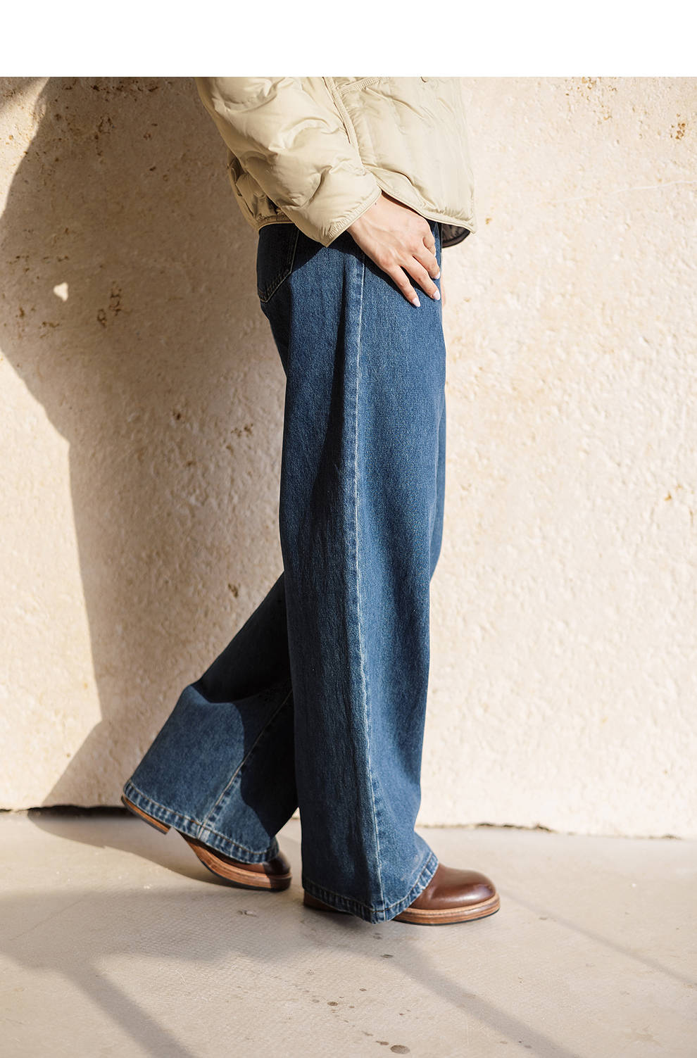 绽放752朵/常青树牛仔裤·宽松帅气复古深蓝直筒牛仔休闲长裤百搭