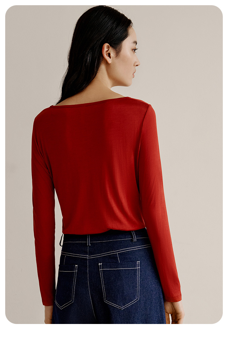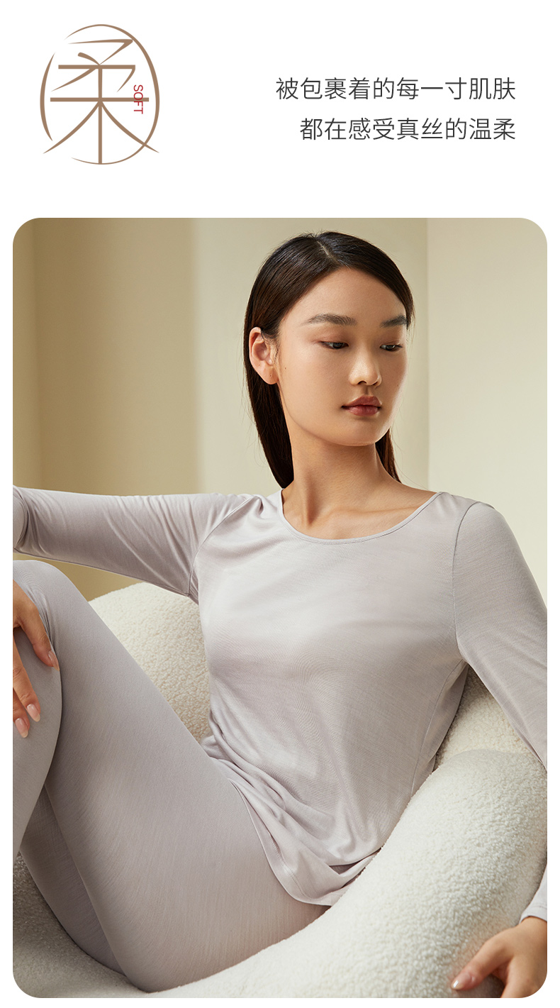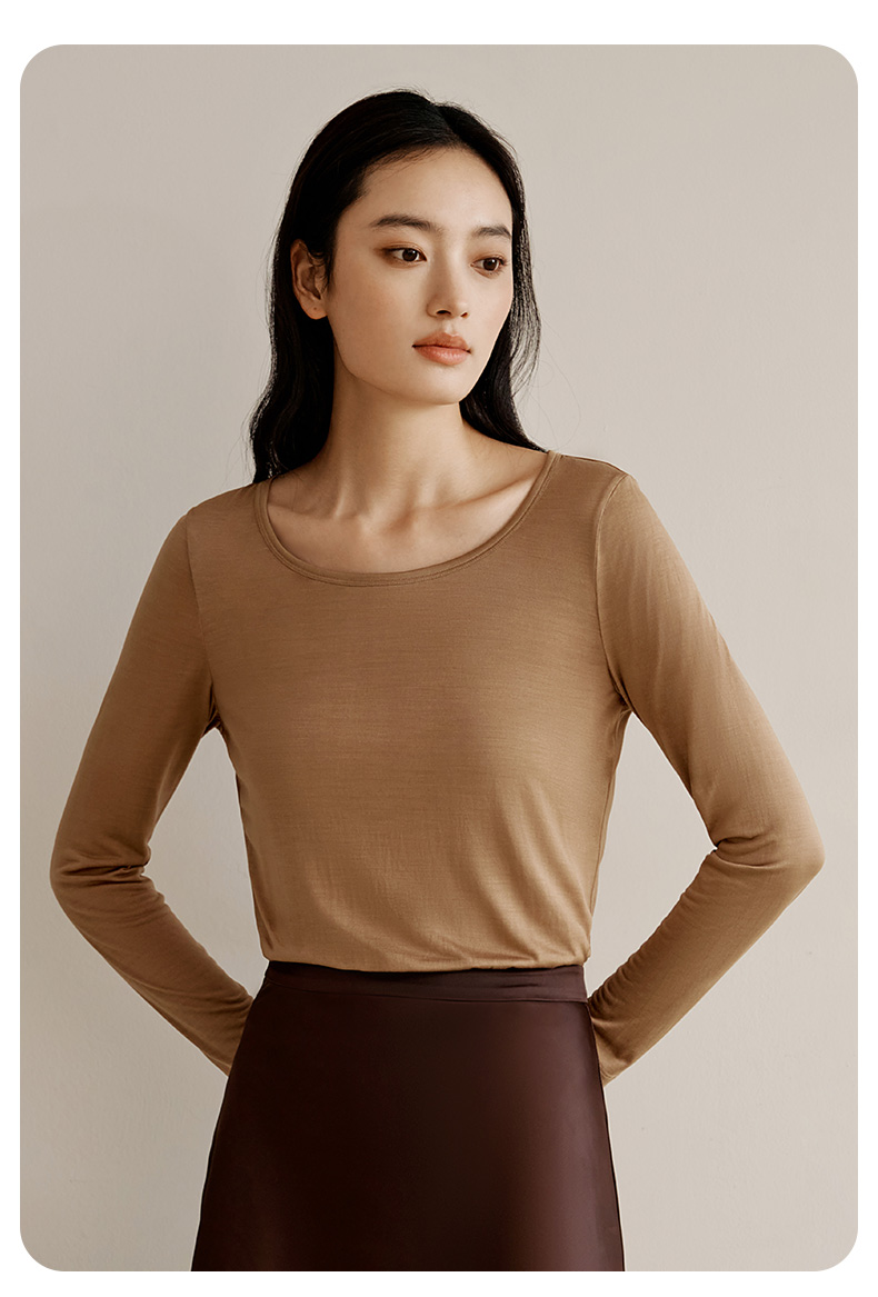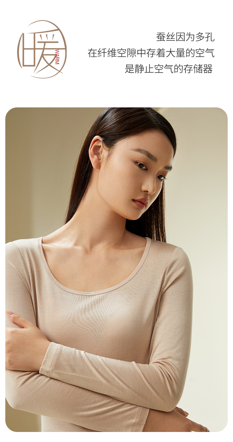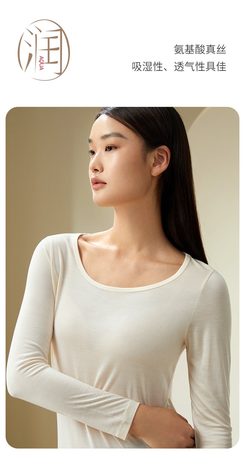 金三塔100%桑蚕丝亲肤打底衫经典圆领长袖修身上衣套头打底衫 1YZF5C714(限价款)