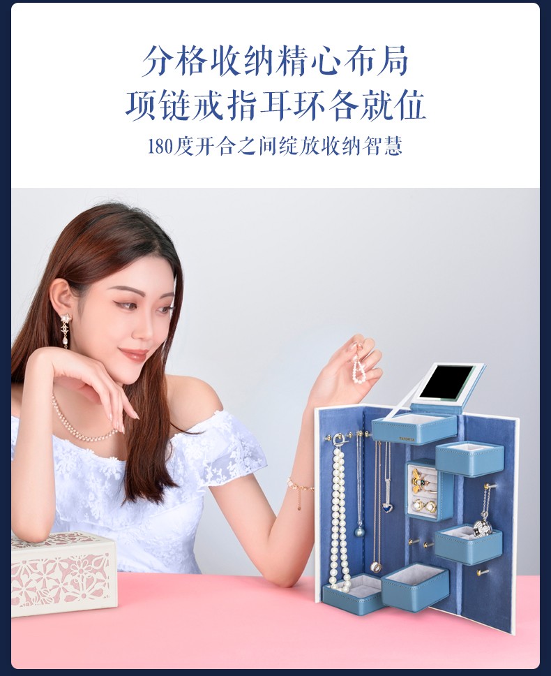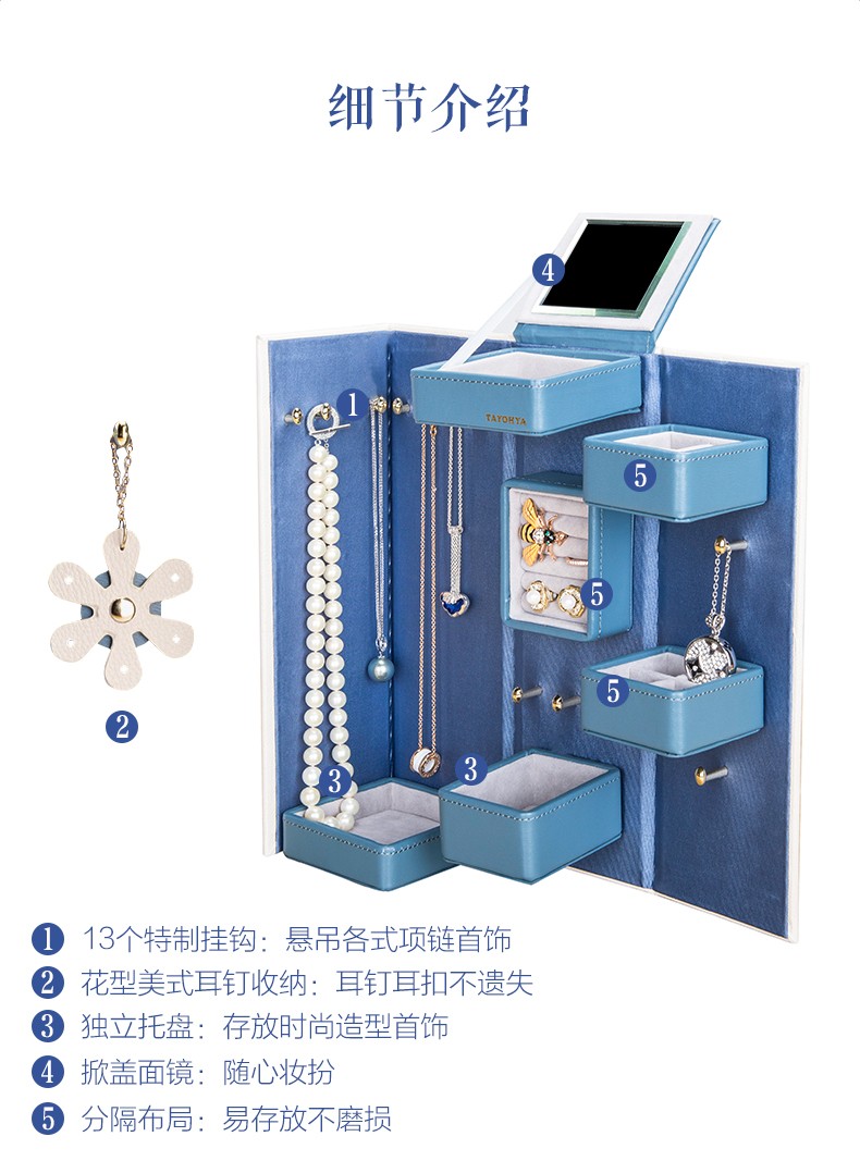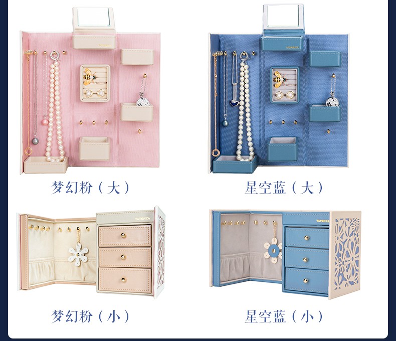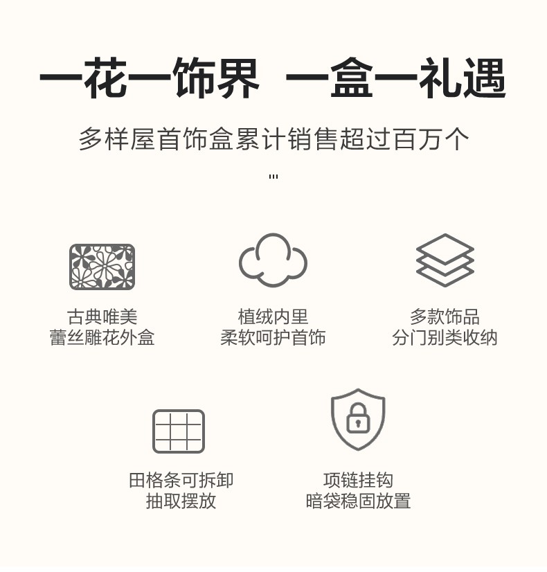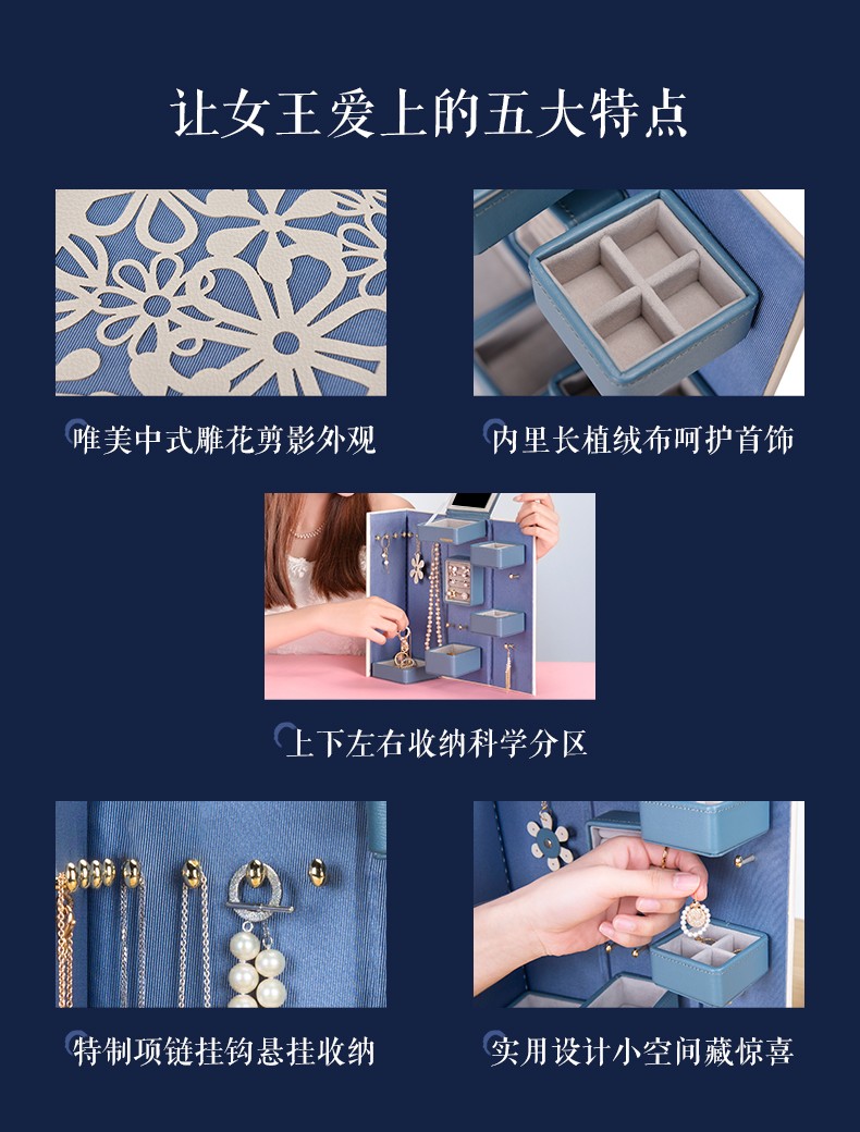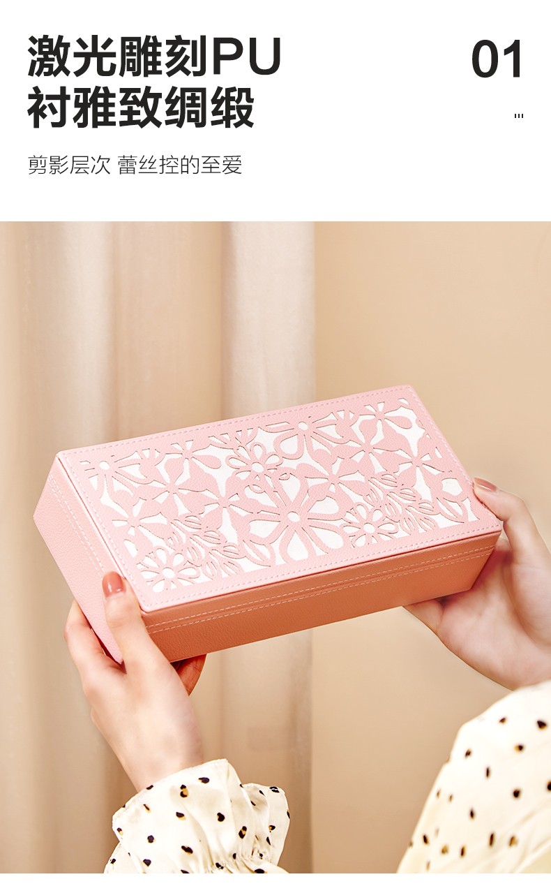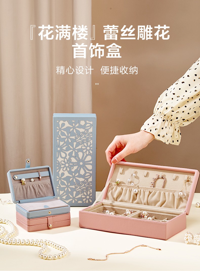 【6F】多样屋首饰盒收纳盒双开中式雕花耳钉环项链戒指盒婚庆新娘生日礼物