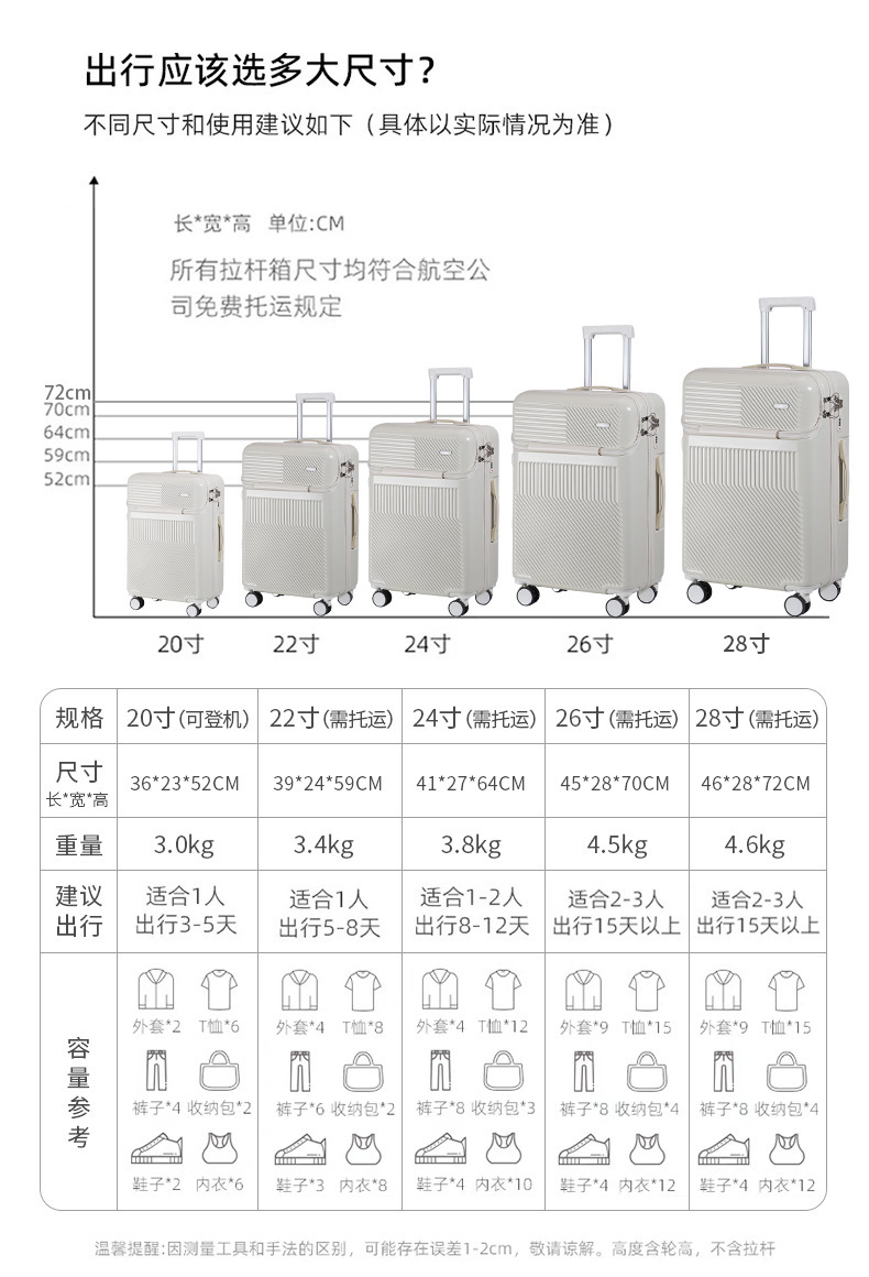 暑假出游,多功能前置开20寸登机箱行李箱小型轻便拉杆箱皮箱24寸韩版旅行箱_ym