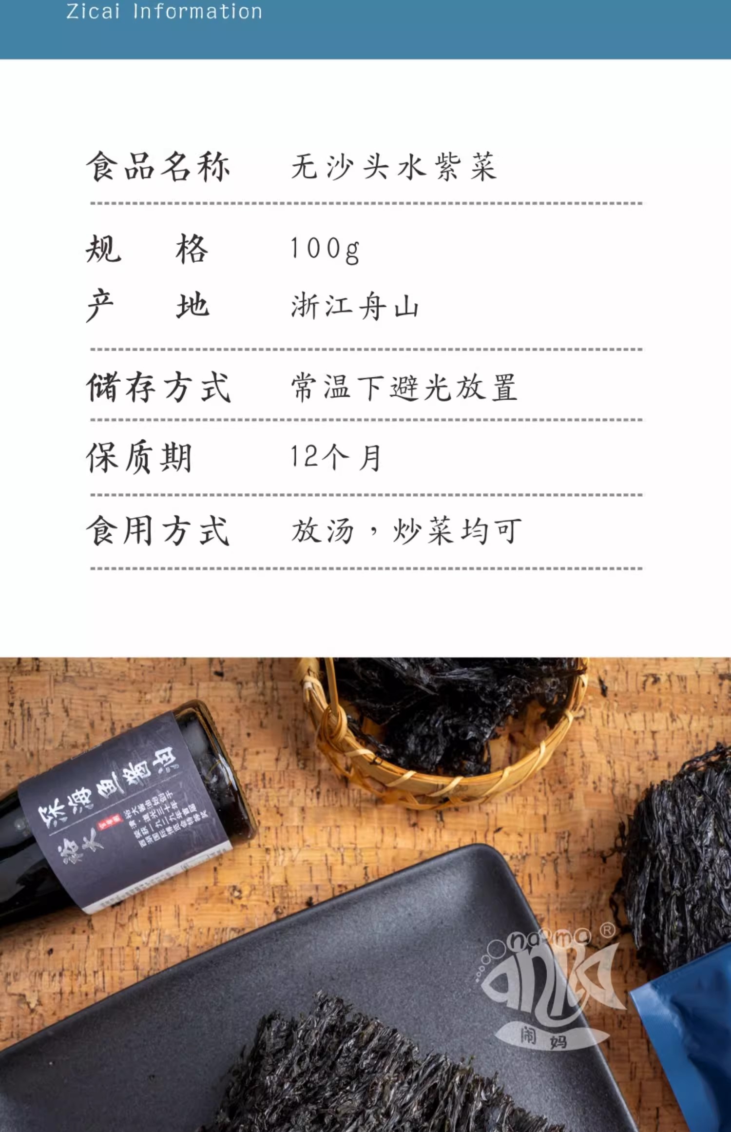 【闹妈】舟山宁波特产无沙头水紫菜干 海鲜干货 免洗紫菜100g一包 3件包邮