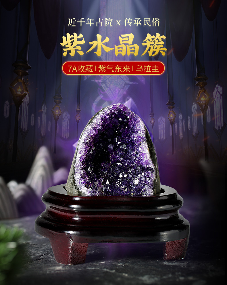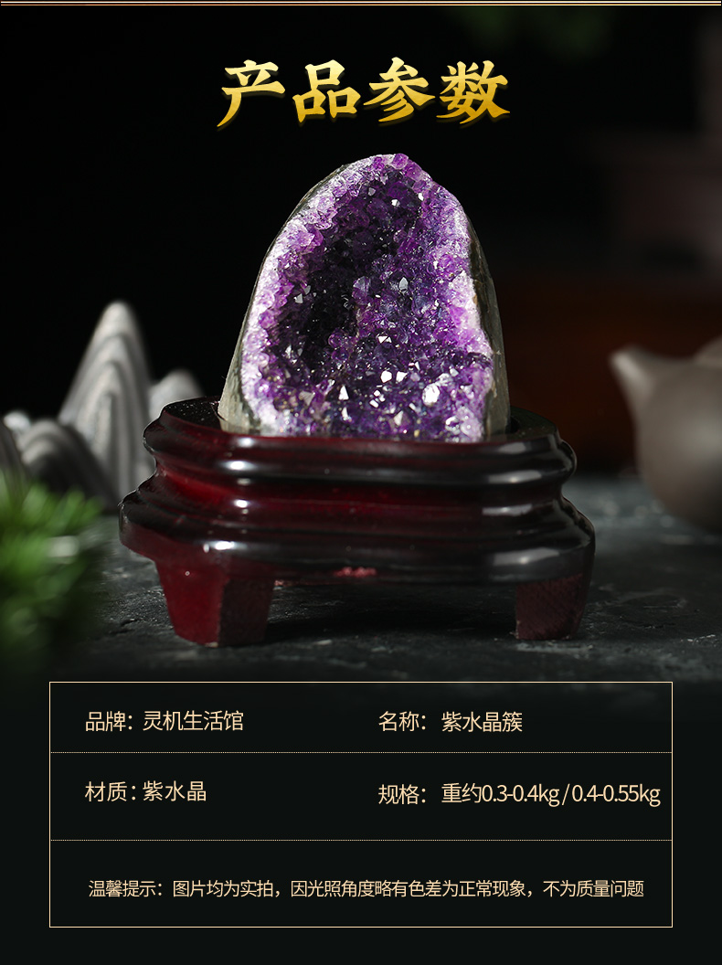 灵机吉品消磁聚气紫水晶簇原石摆件