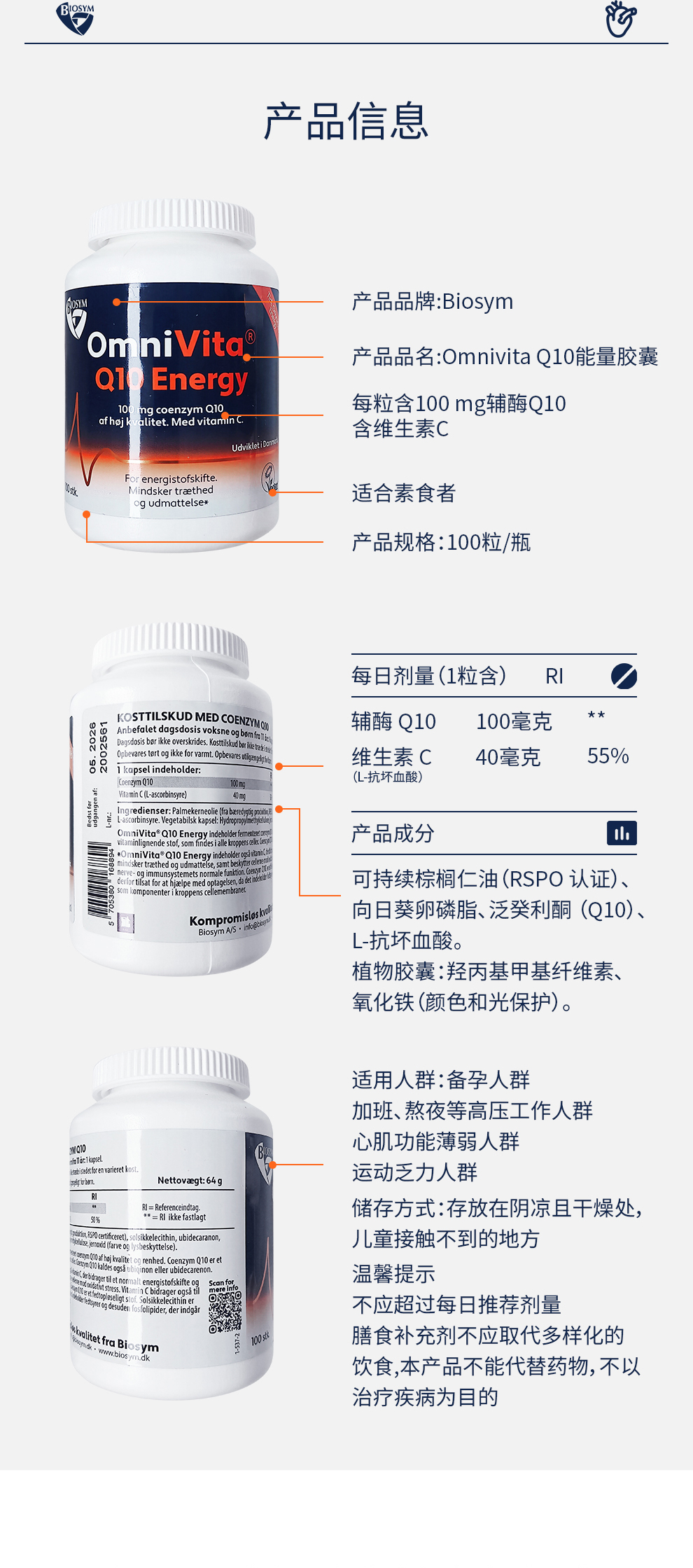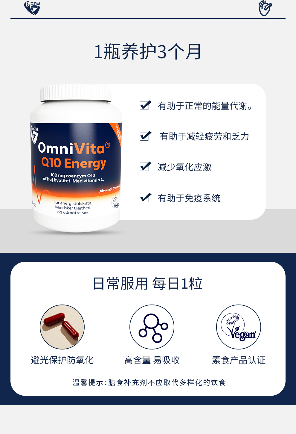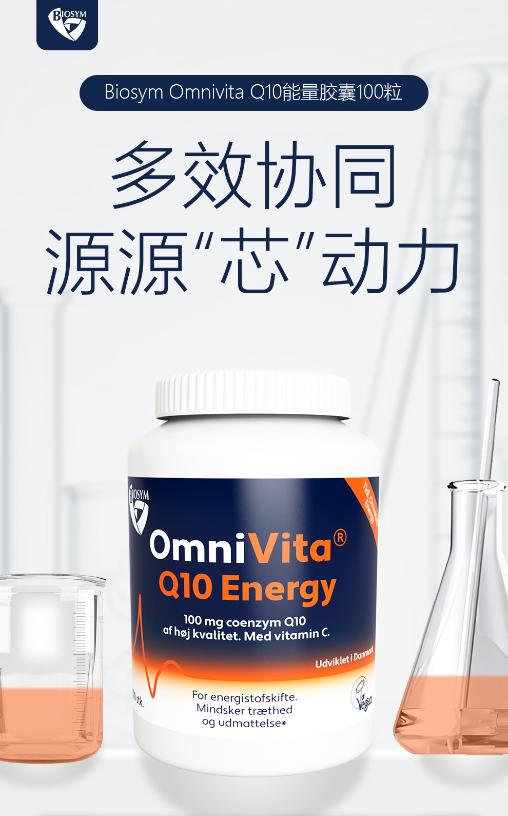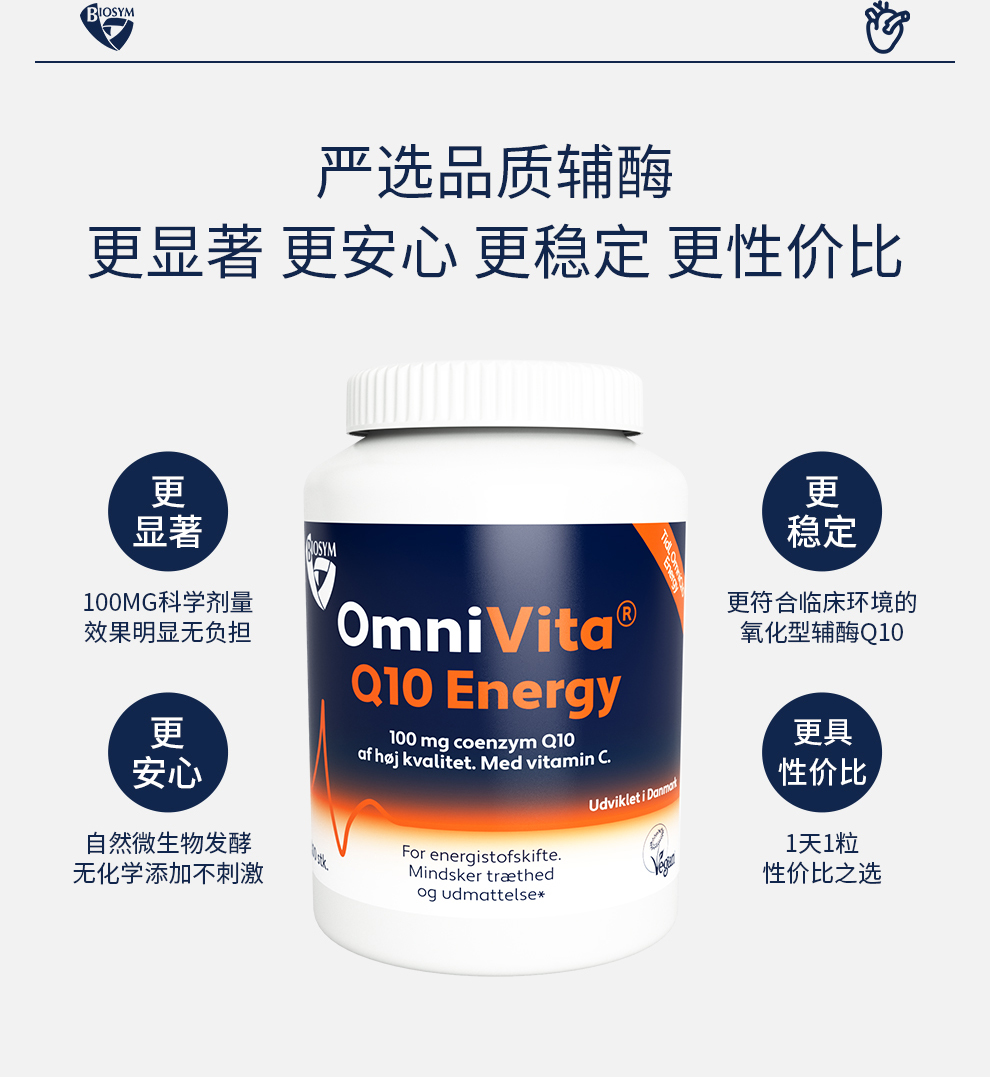[丹麦]Biosym Omnivita Q10能量胶囊100粒. Biosym OmniVita Q10 Energy 100 caps.