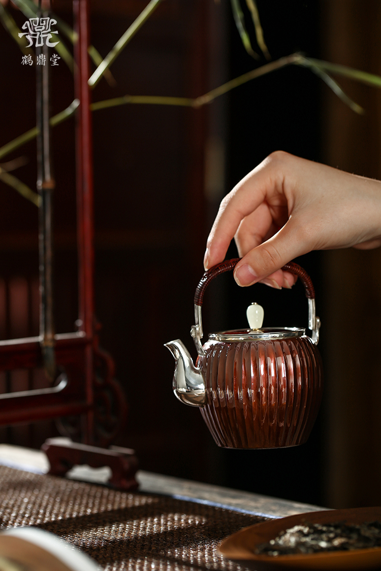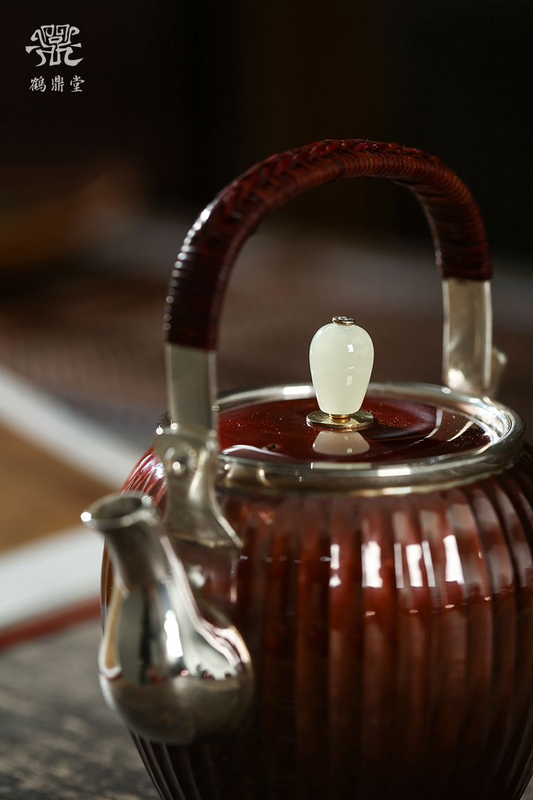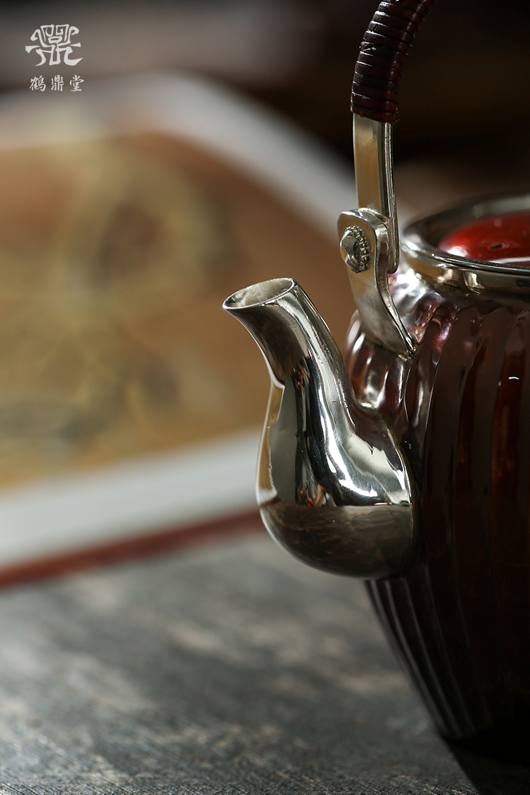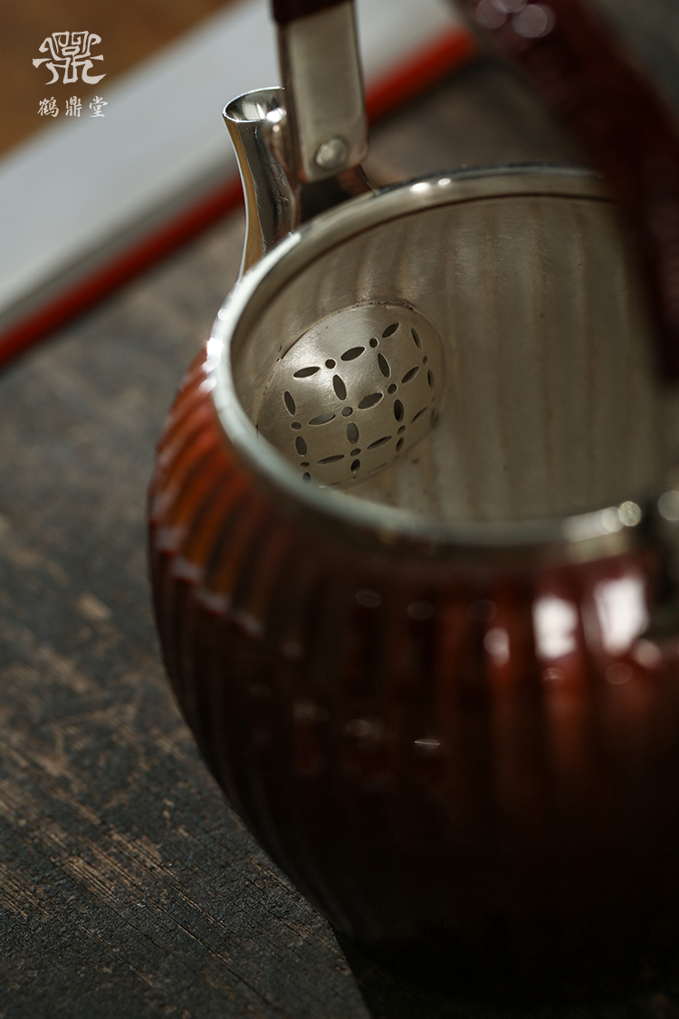 鹤鼎堂银壶于飞系列棠棣急须镜面(铜包银)(缺货)