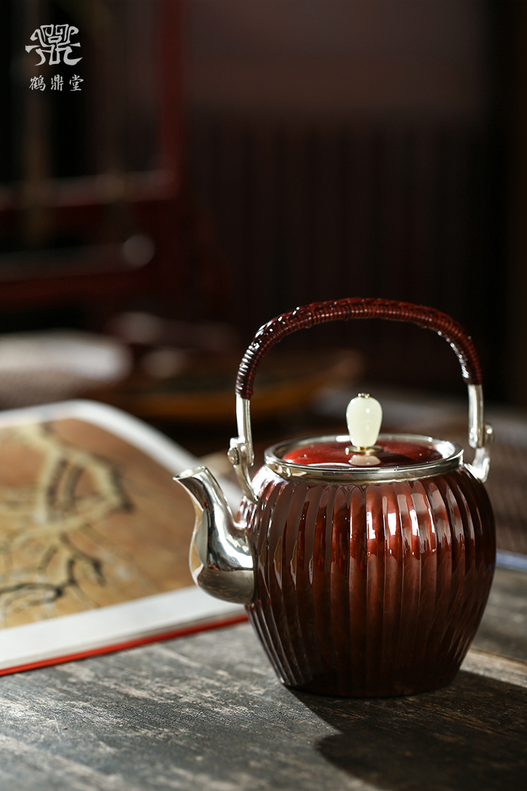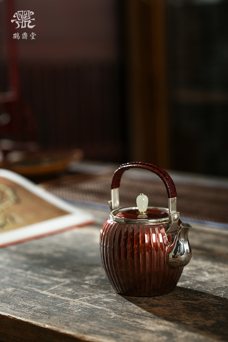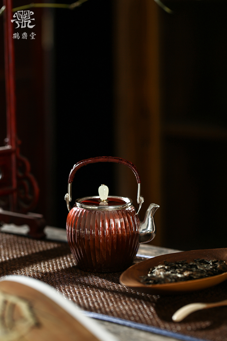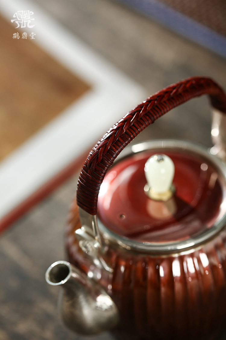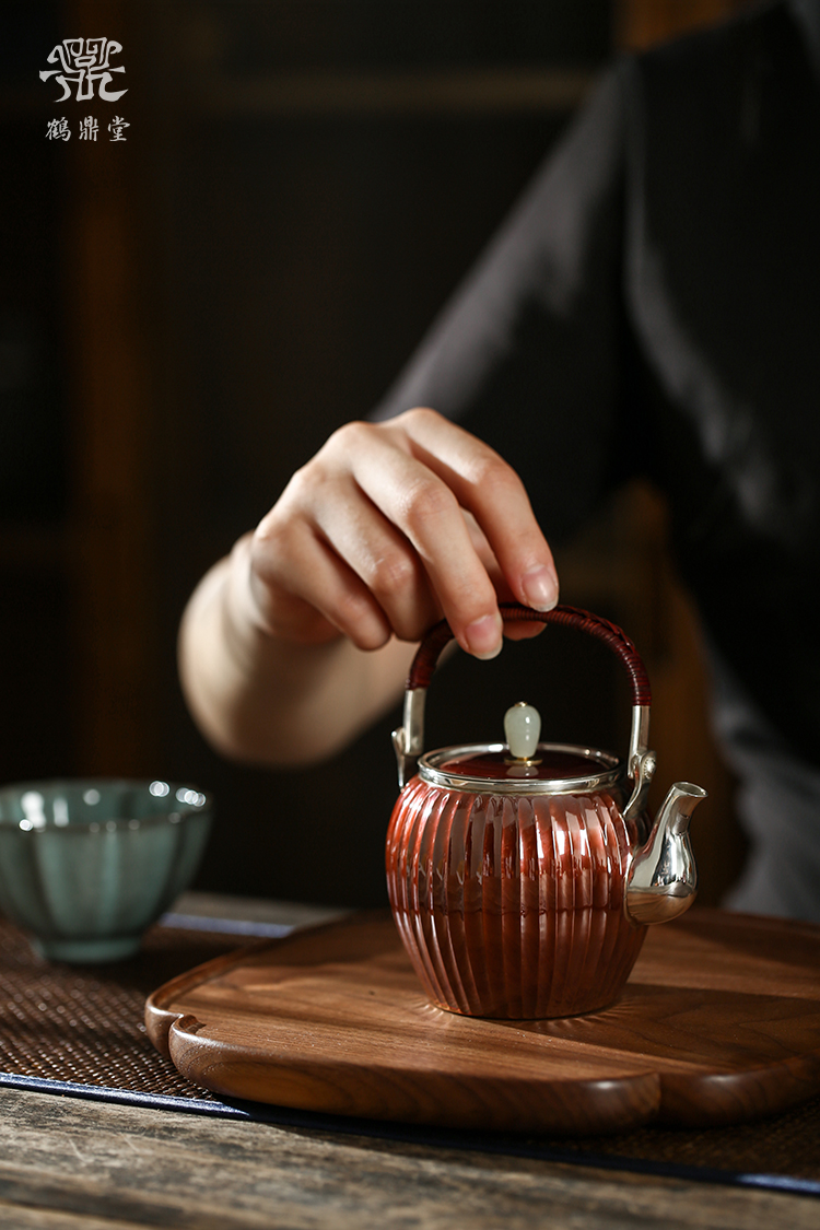 鹤鼎堂银壶于飞系列棠棣急须镜面(铜包银)(缺货)