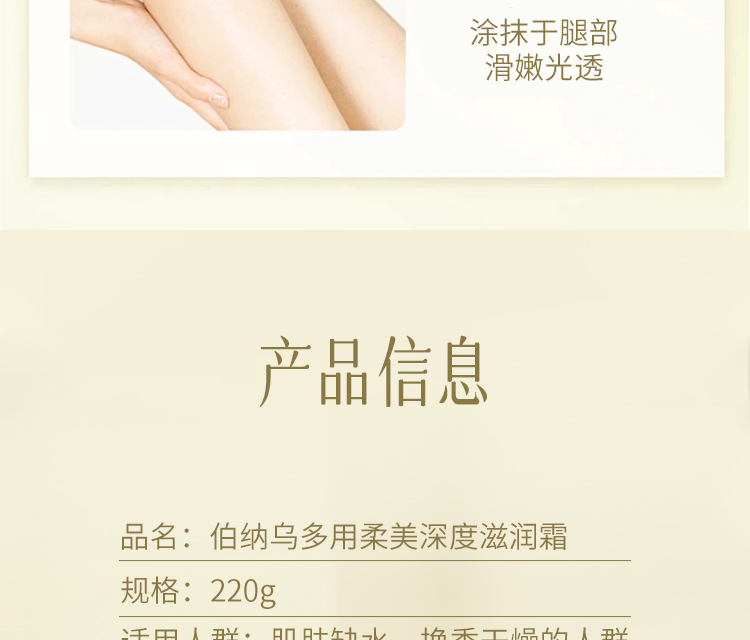 热卖!深度滋润身体乳!【超值2瓶装】胖*来断货品牌 伯纳乌 清香滋润 深度保湿 一瓶多效 淡纹抗皱 220g/瓶