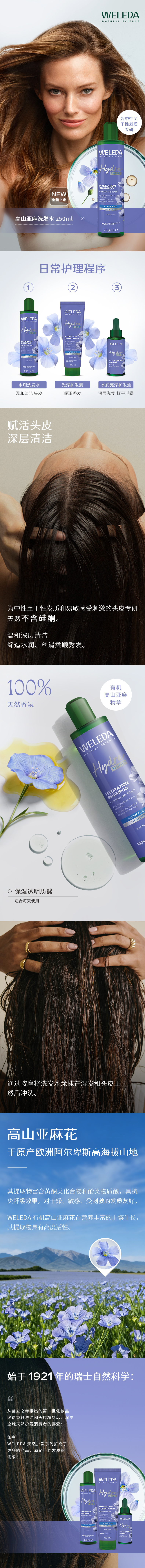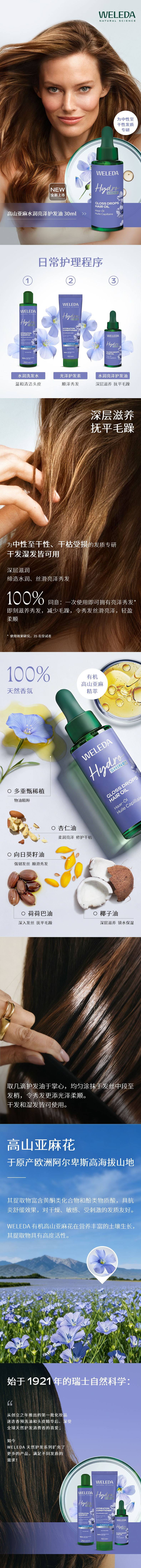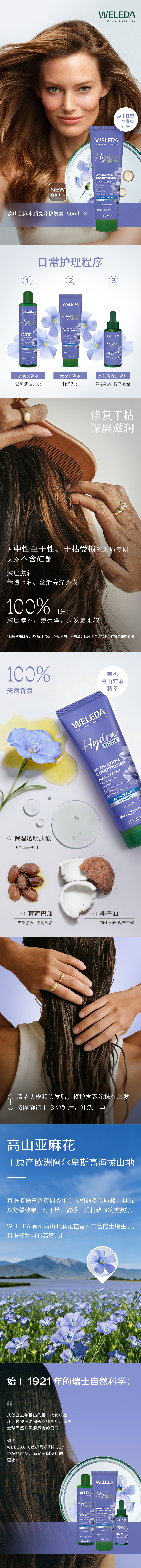 【新品】WELEDA维蕾德高山亚麻洗发水250ml/护发素150ml/护发精油30ml水润透亮秀发养护强韧发丝