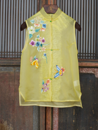 盛唐牡丹 |真丝绡手绣马甲-草黄色