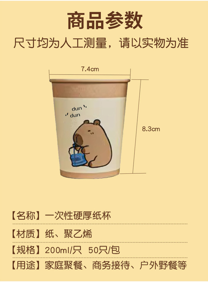 【9.9抢50只❗️卡皮巴拉加厚纸杯】全新升级新体验,冷热适宜/开水不软榻/无荧光剂,厚家用本色纸杯,办公茶一次性水杯子冷热饮奶茶杯L