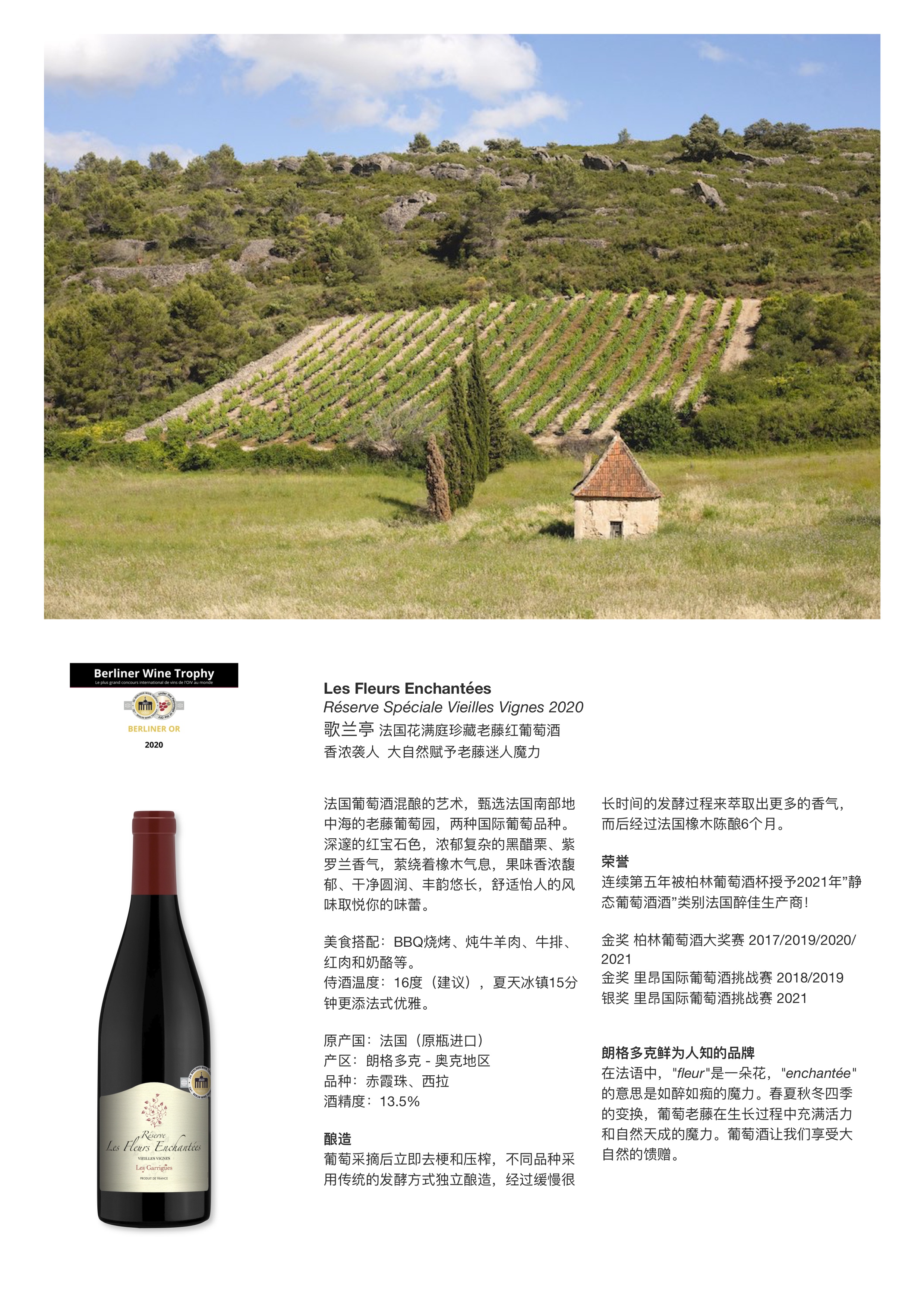 歌兰亭法国花满庭珍藏老藤红葡萄酒Les Fleurs Enchantees Reserve(2020)