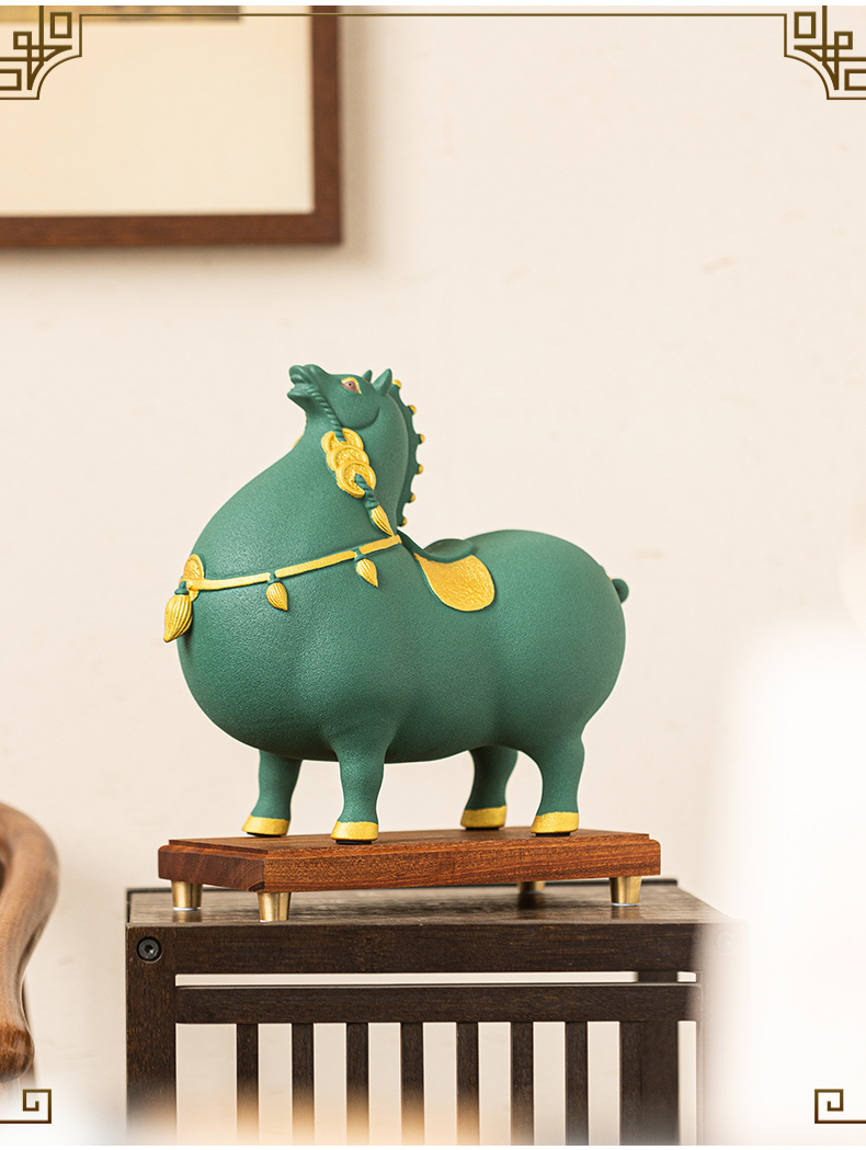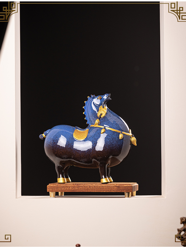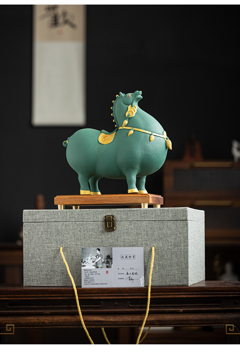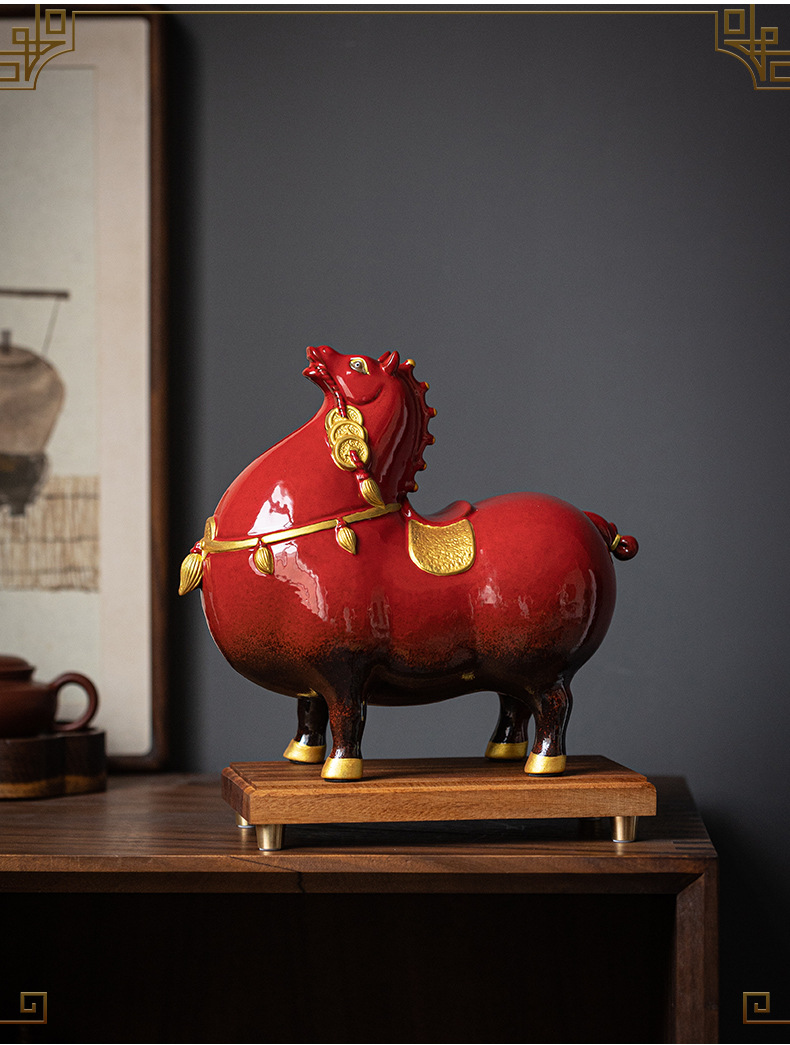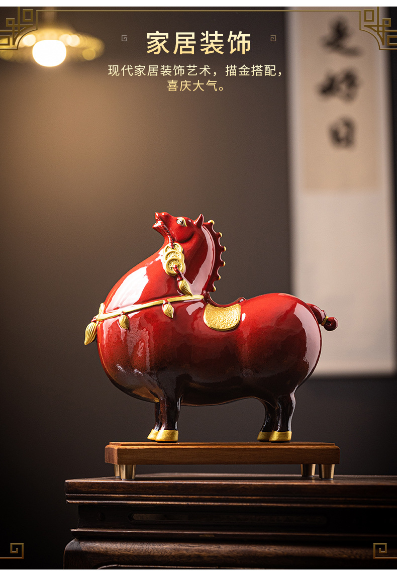 【马年】陶瓷唐马摆件 新中式客厅酒柜装饰桌面工艺品礼品 元旦新年春节礼物