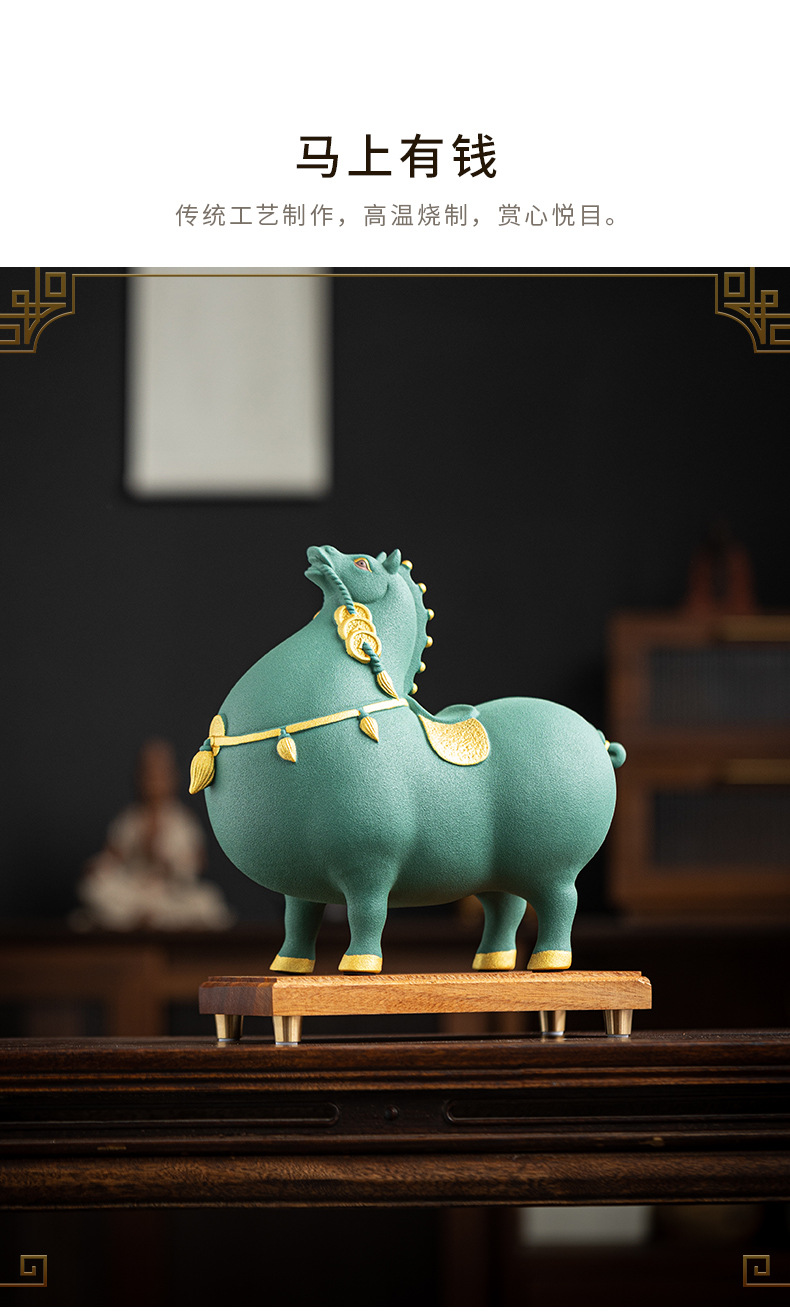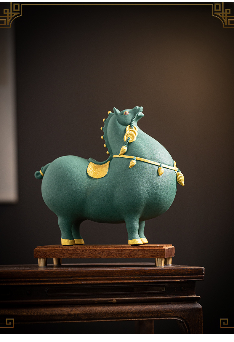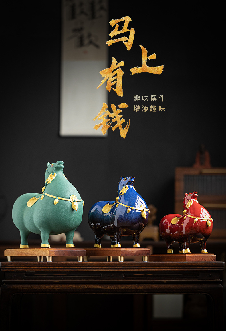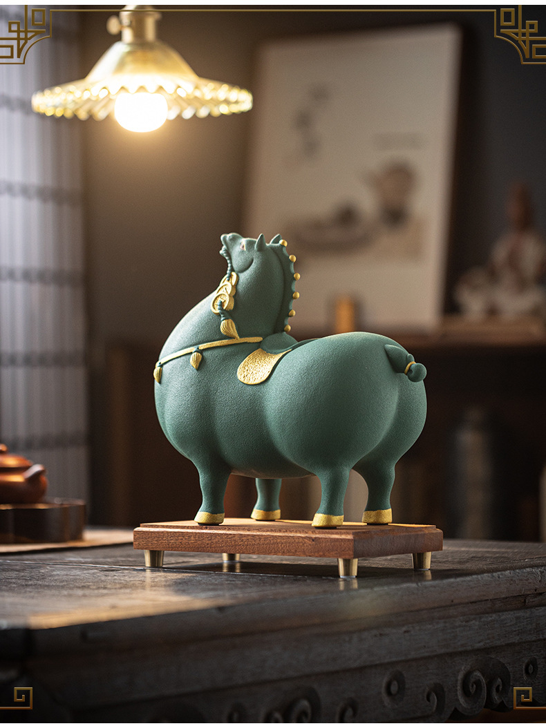 【马年】陶瓷唐马摆件 新中式客厅酒柜装饰桌面工艺品礼品 元旦新年春节礼物